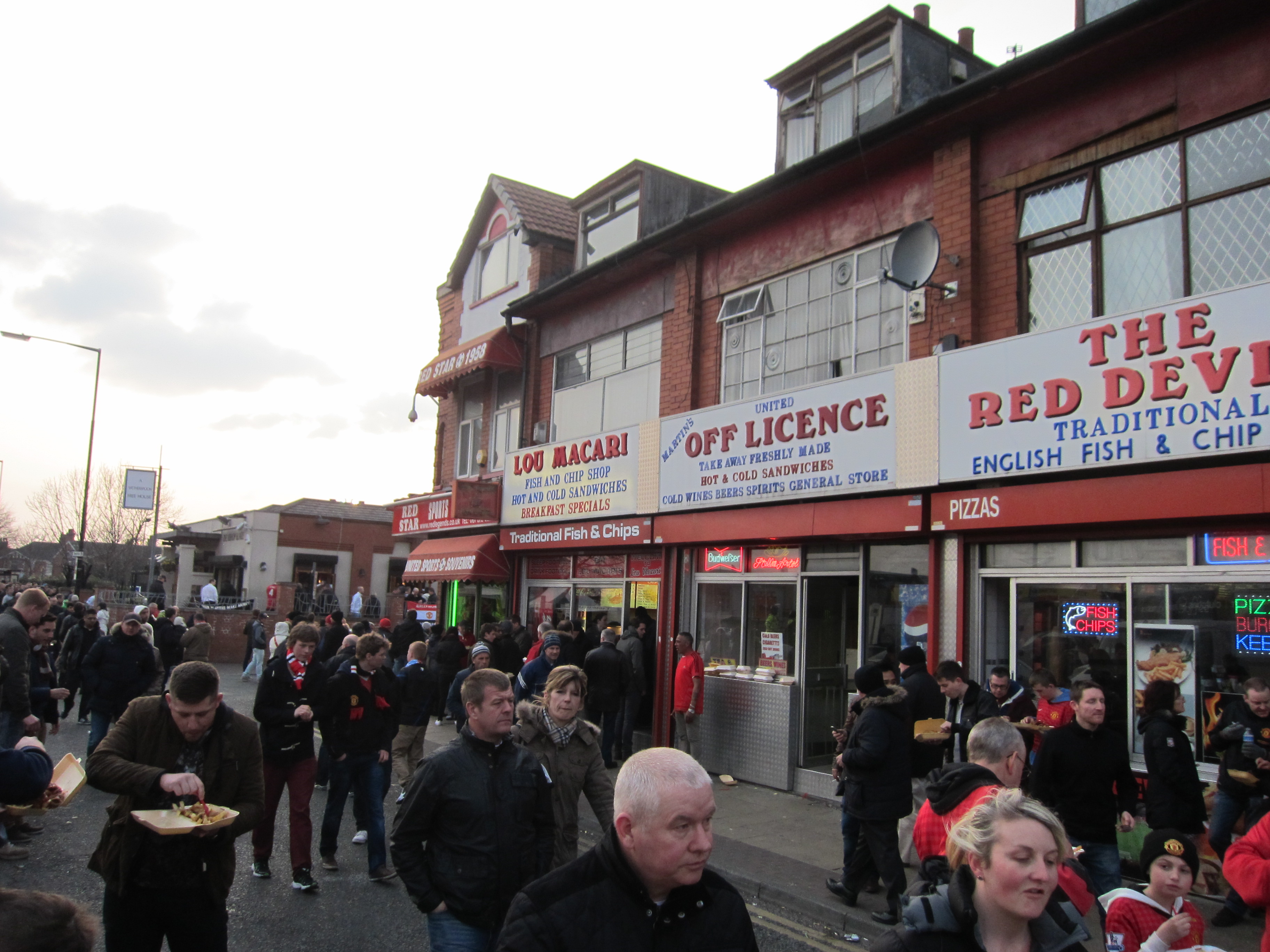 But – I prefer the Chester Road match experience, whether it is the Bishop Blaize, the Lou Macari fish ‘n chips or Red Legends souvenir shop and a chat with Angelo, or the fanzine sellers on Sir Matt Busby way. Perhaps a nostalgic feeling of what it used to be like to go to matches, when I was one of a very few foreigners travelling.