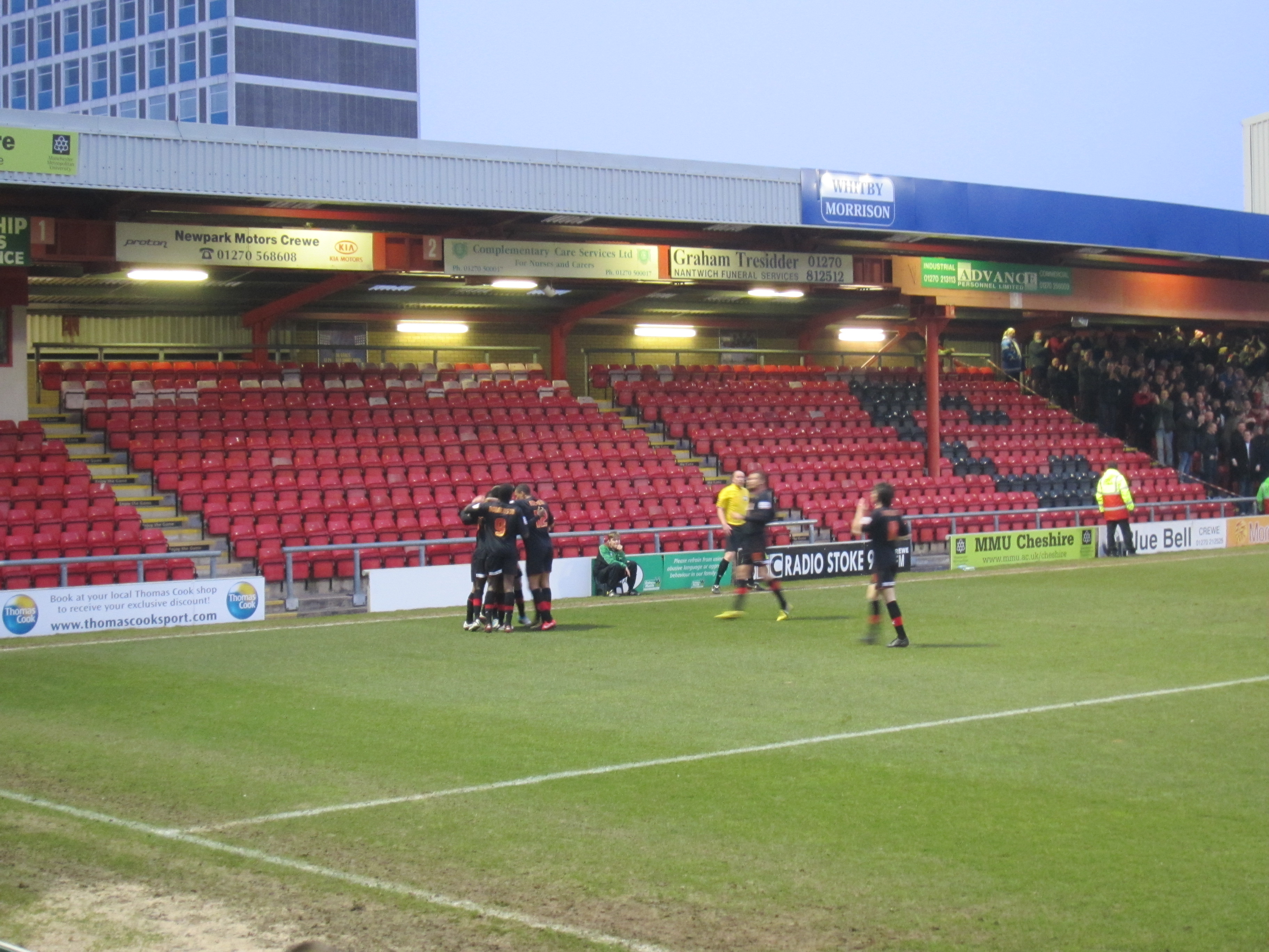 That just about left me time to go to the chippy before the match. The queue was long (compared to the many outlets of junkfood around many football grounds), so I only just made it into the ground by kick-off. The crowd seemed very local; although a nice Crewe fan I spoke with on the way back told me that they had a Scandivian supporters club and that there always were members attending.