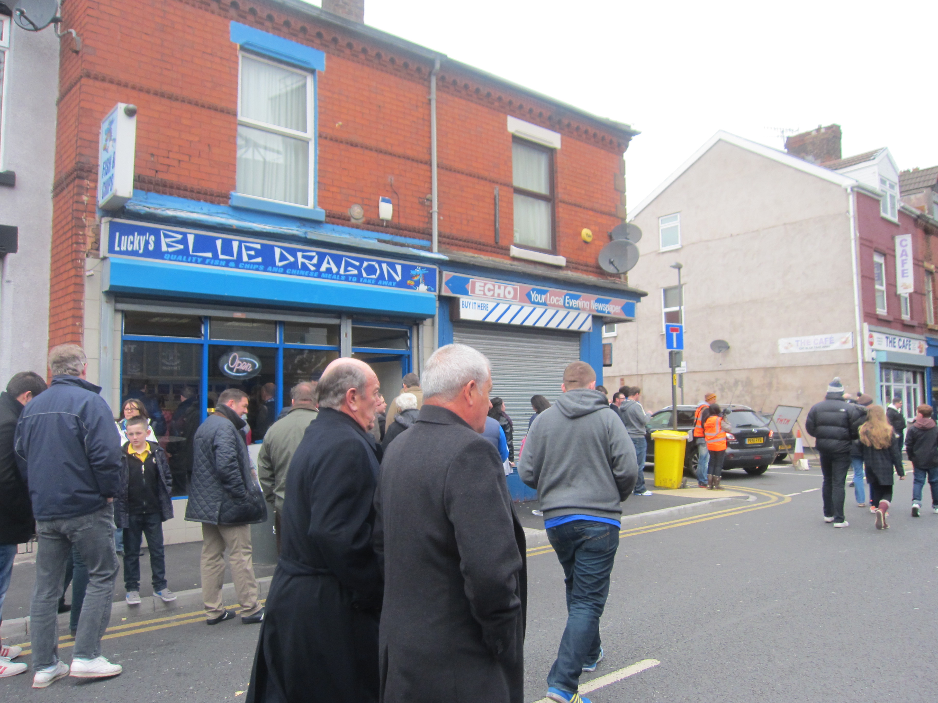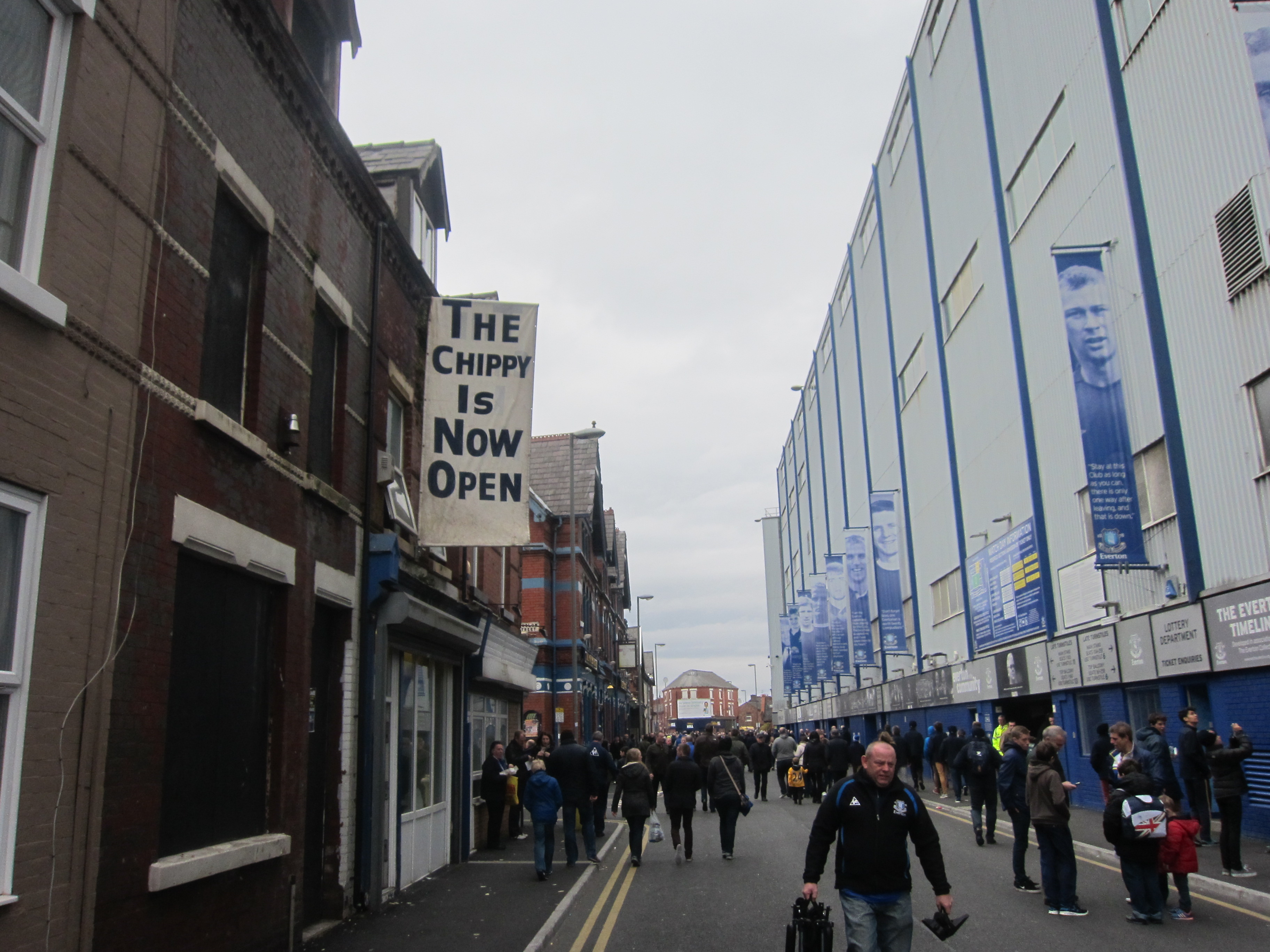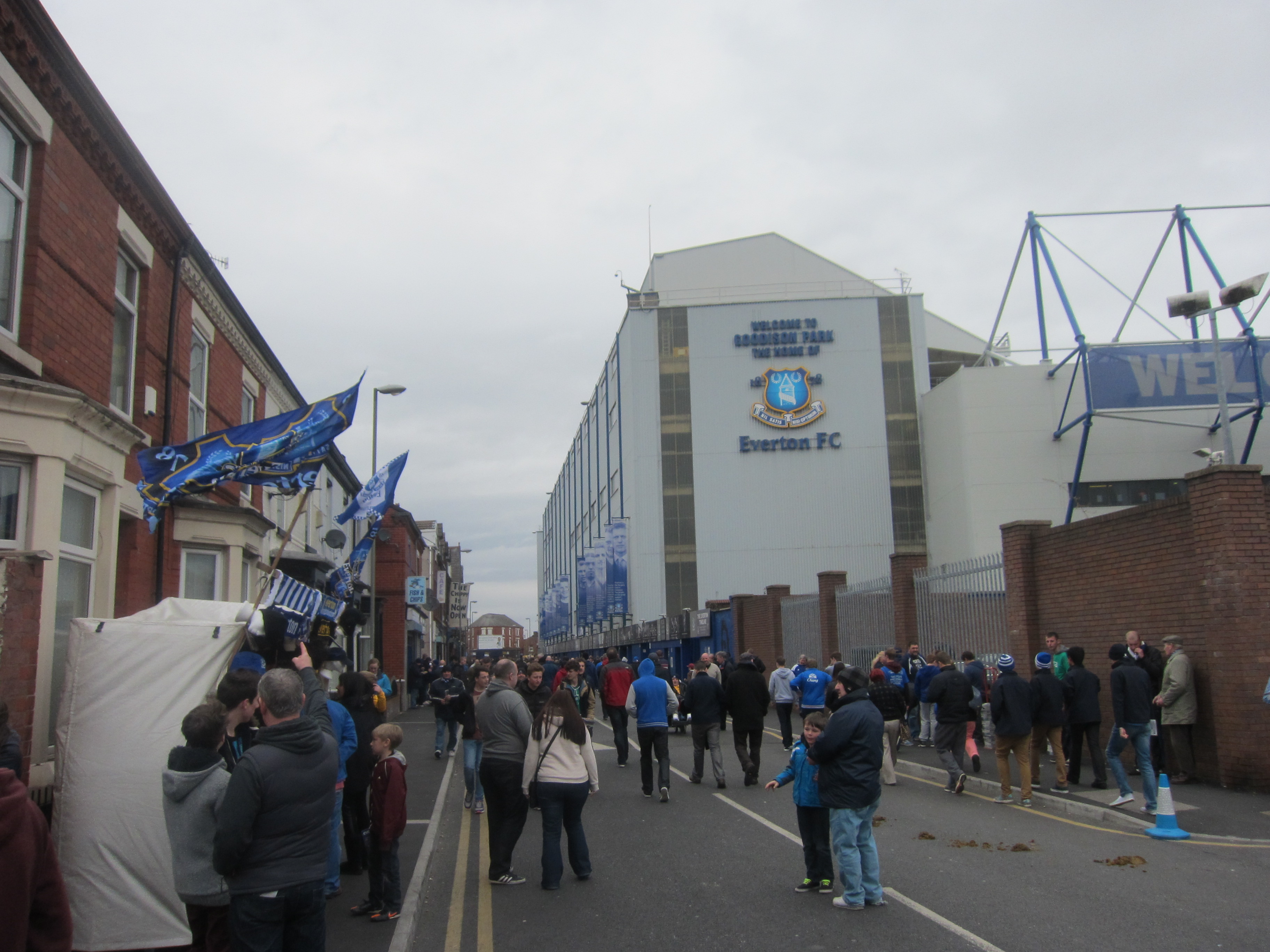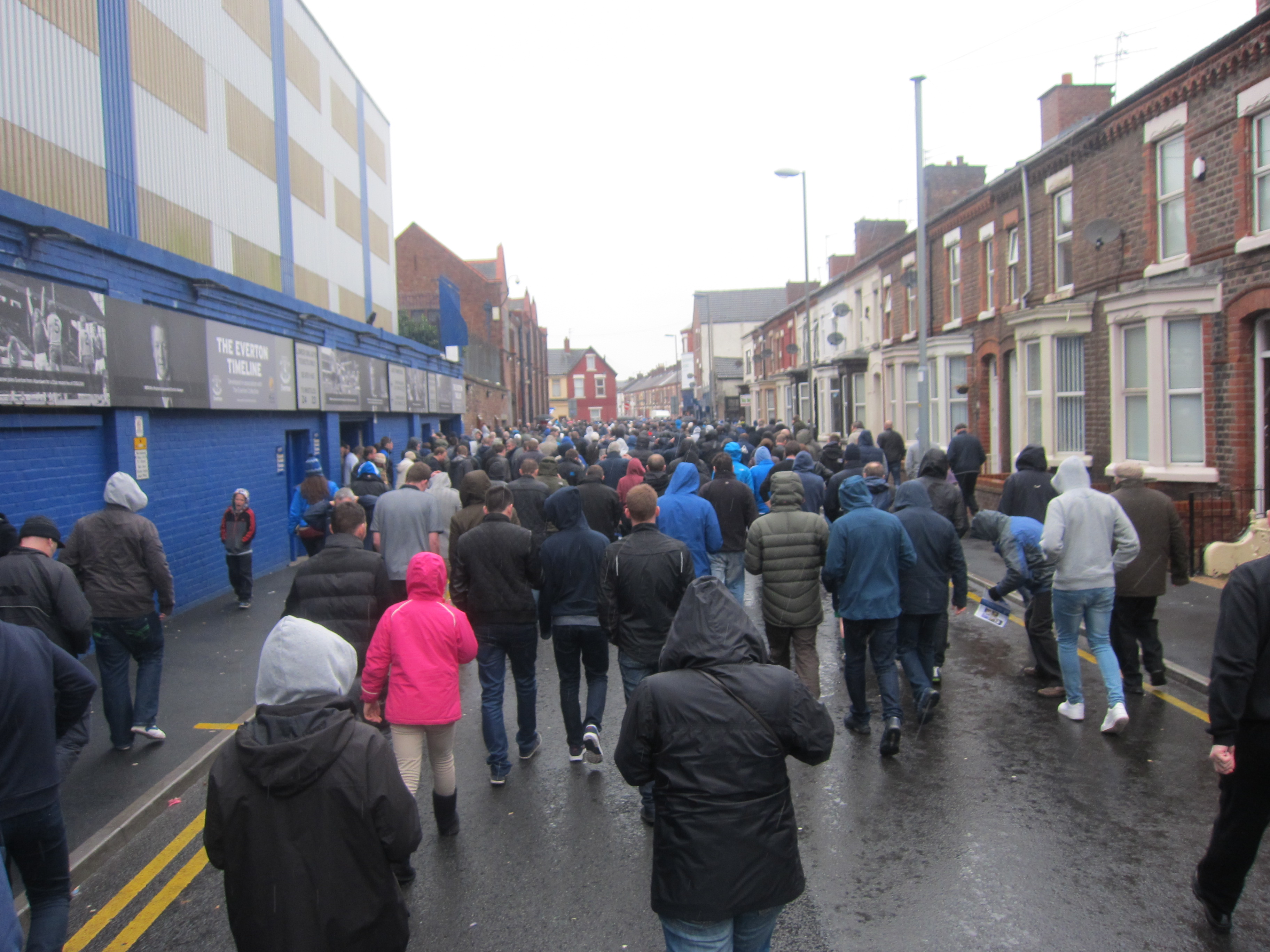 At the final whistle, the crowd dispersed in the narrow streets around Goodison, which is even more tightly crammed by rows of housing at Anfield, but unlike Anfield, the housing around Goodison has not been condemned but is giving you a feeling of what football used to be like.