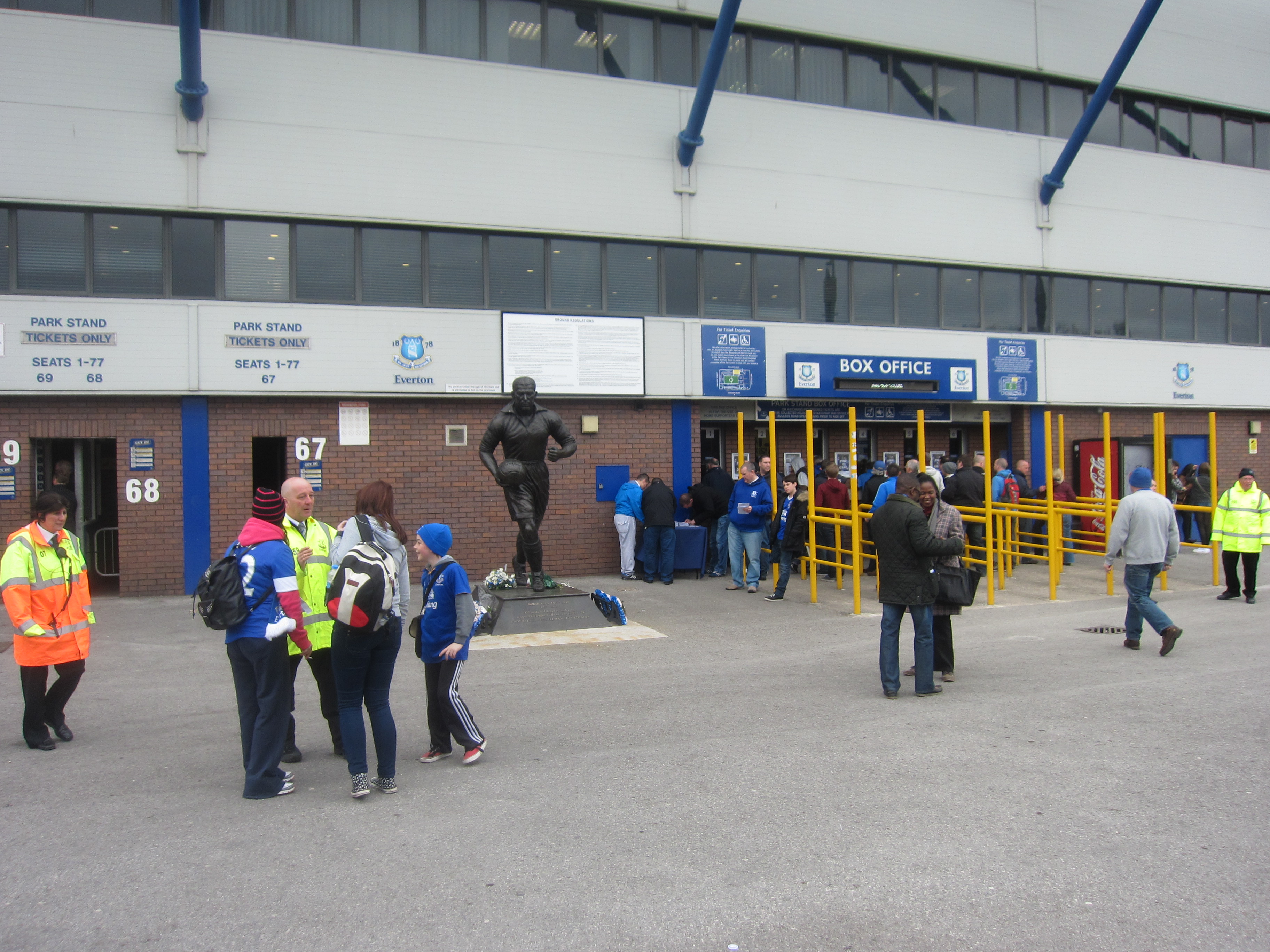 Everton are proud of their history. They still have a 12-year-old toffee-girl walking round the ground before the match, throwing toffees to fans. And outside, the stadium is adorned by a timeline of Everton’s history, made by the ground-breaking Everton collection. There is also a statue of Everton legend Dixie Dean in front of the reception at the Park Stand.