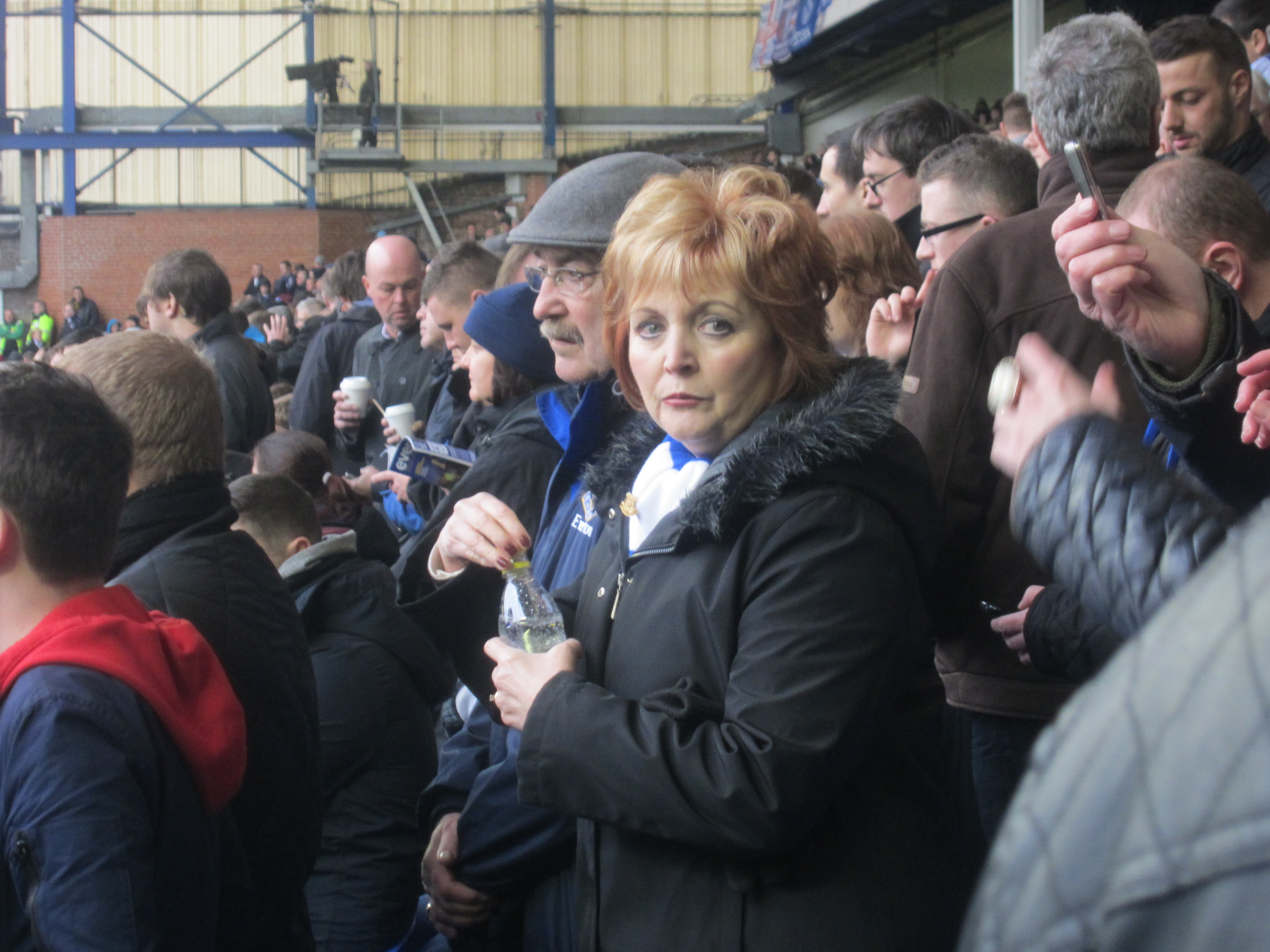 But Goodison is definetely Scouse territority! I went to a snack shop near the ground, and didn’t understand a word of what the waitress said (except her final “luv”) – her scouse accent was that thick. I tried to be local and ordered two Scouse Pies – but they must go down as the most disappointing pre-match meal I have ever had. Inside the ground, everybody around me were talking with scouse accents almost equally thick. Fortunately, their outbursts were so brief that I got the meaning without subtitles: “f….. shoot!” and things like that. The crowd was – from what I saw 100% white, with relatively few kids, but a fair share of women.
