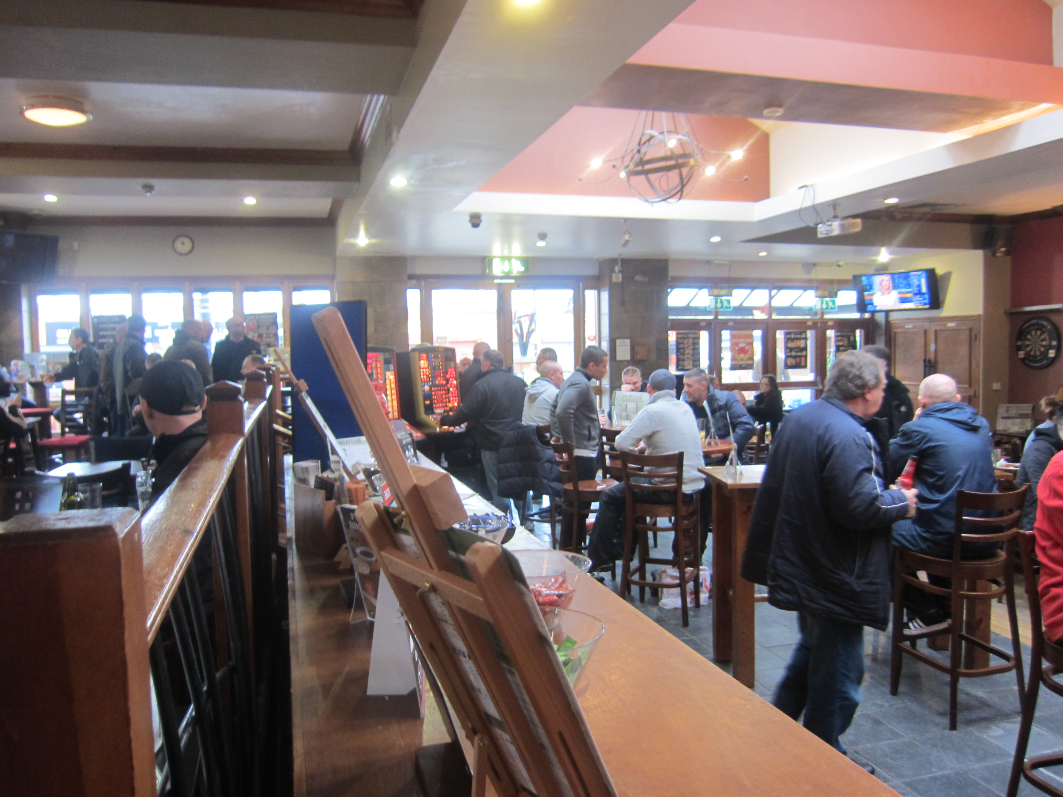 I walk into the pub to wait for the coach to take us from Manchester to Stoke. Having just had a little bread for breakfast, I opted for some more breakfast and coffee instead, and sat down at a table, opposite an elder man, Peter, who was already on his second pint.