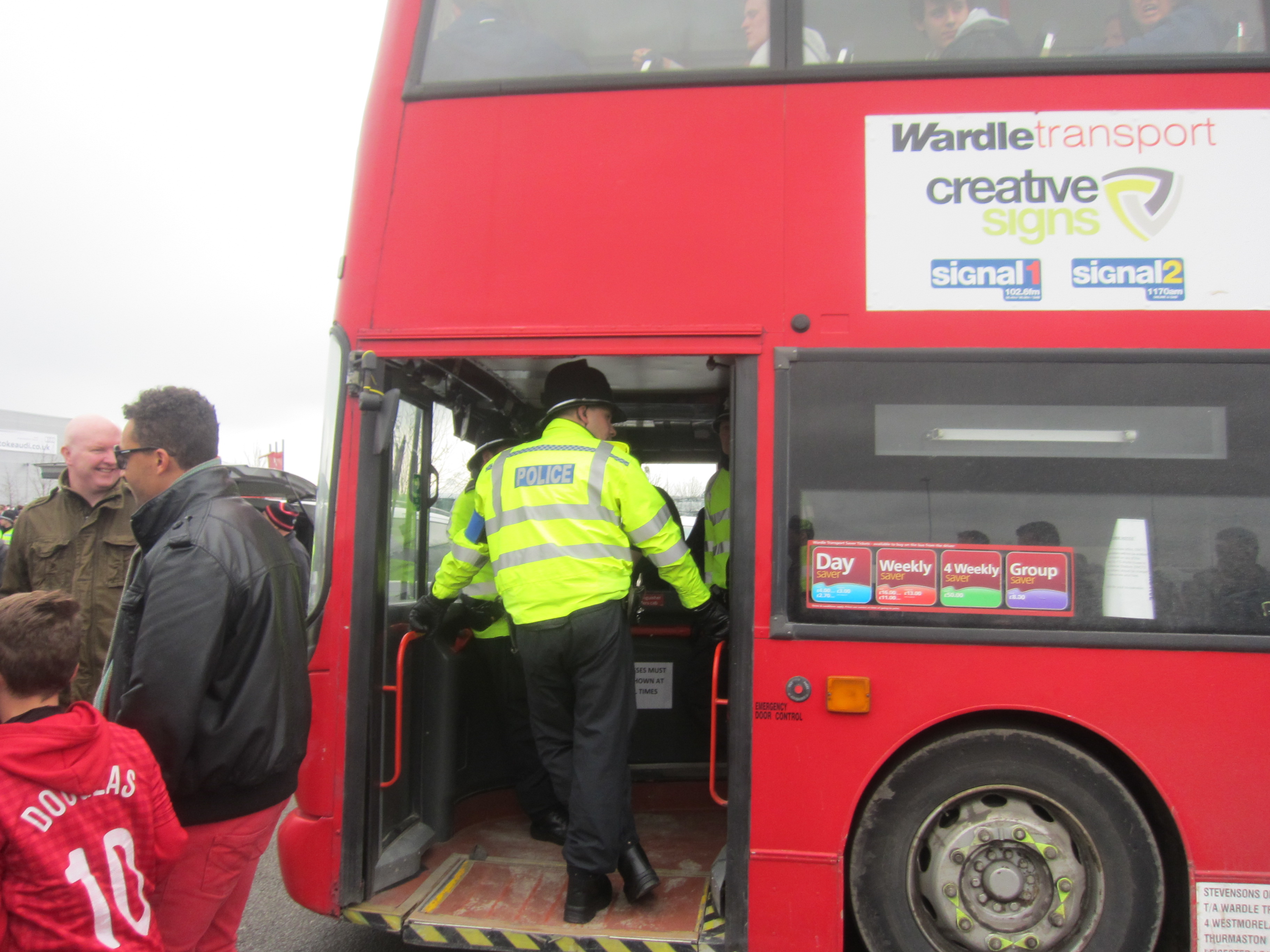 I headed straight for our coach – the away coach section was crammed with police and security, with frustrated Stoke fans outside gesticulating angrily. Finally, the police decided it was time for us to leave, and escorted us through the traffic out to the motorway. Maybe it was exhaustion after the match or the loud music that was still banging out the PA, but there was not much talking on the way back to Manchester. Just satisfaction that we are only 7 points away from Championship number 20 now.