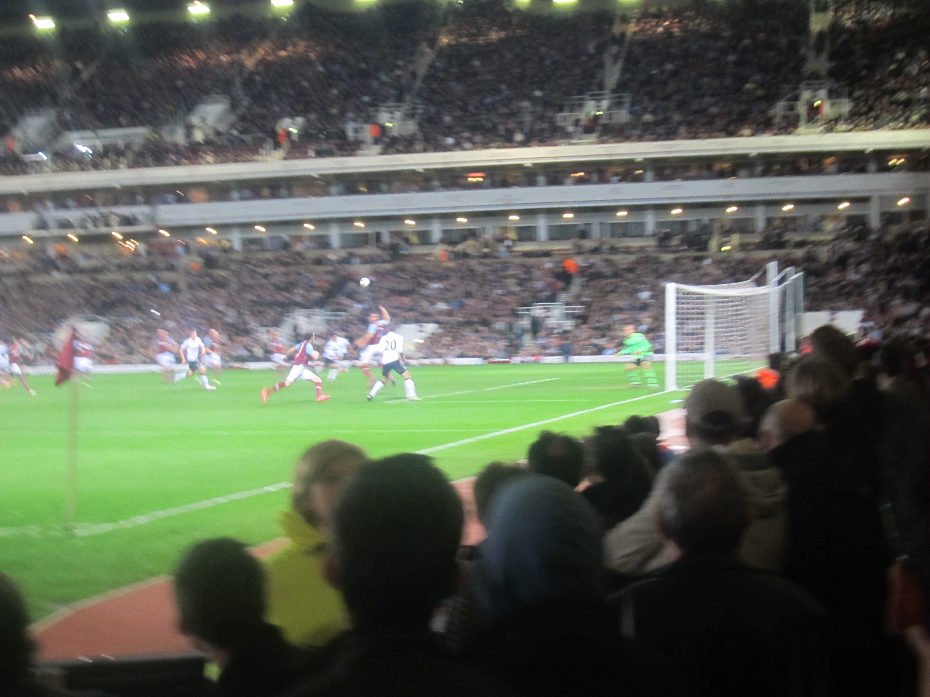 The match is a fine display of the excitement of English football. The United crew is not quite as vocal as the one Sunday, but they still do their bit to create a great atmosphere. So too do the West Ham supporters. They did a “I am forever blowing bubbles” on their own, before singing along to the tape over the PA before the match. They did so again at half time – and at the end of the match. To me, a lot more impressive than “You’ll never walk alone” at Anfield, this time accompanied by bubbles from the side of the pitch rather than scarf raising.