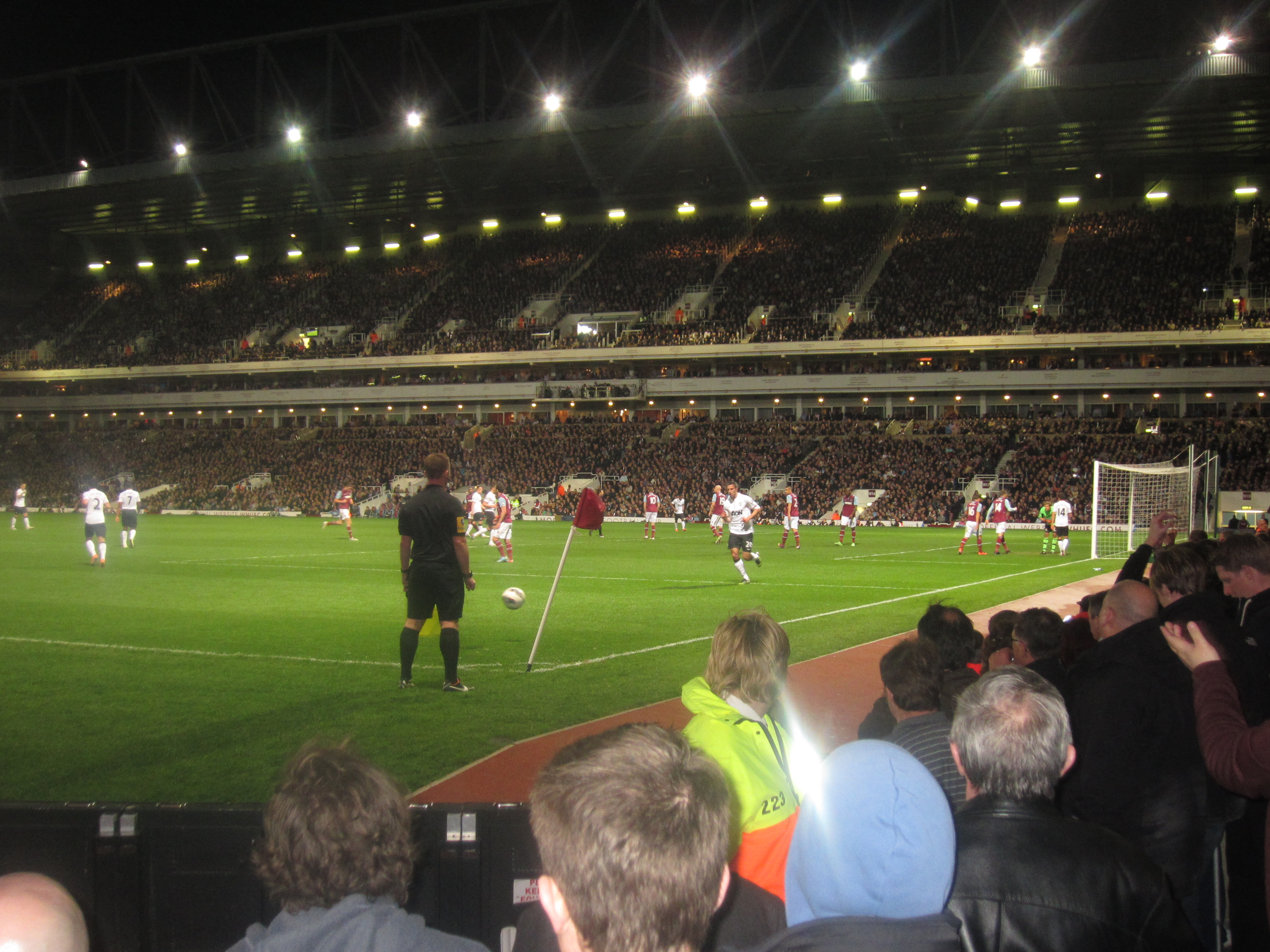 Altough there is a half-open cornequadrant, the ground seems very intimate and integrated, the floodlights adding to this feeling. The view from the seats, however, was very poor. Even more so for the poor Manchester girl behind me, who tried to get a view standing on her seat, but was asked to step down by stewards. But all in all definetely a good place to visit.