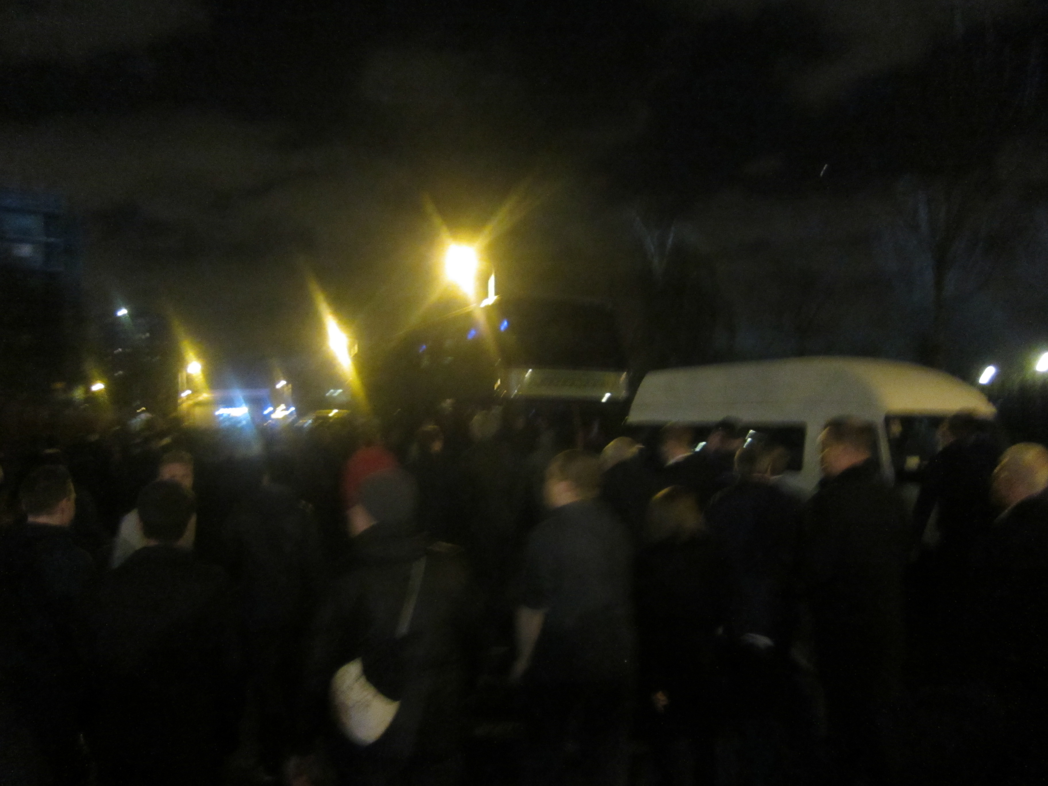 The watching policemen seem rather overzealous to me. Several United supporters are pounced on, despite seemingly only taking part in the banter on an equal footing with the West Ham fans.