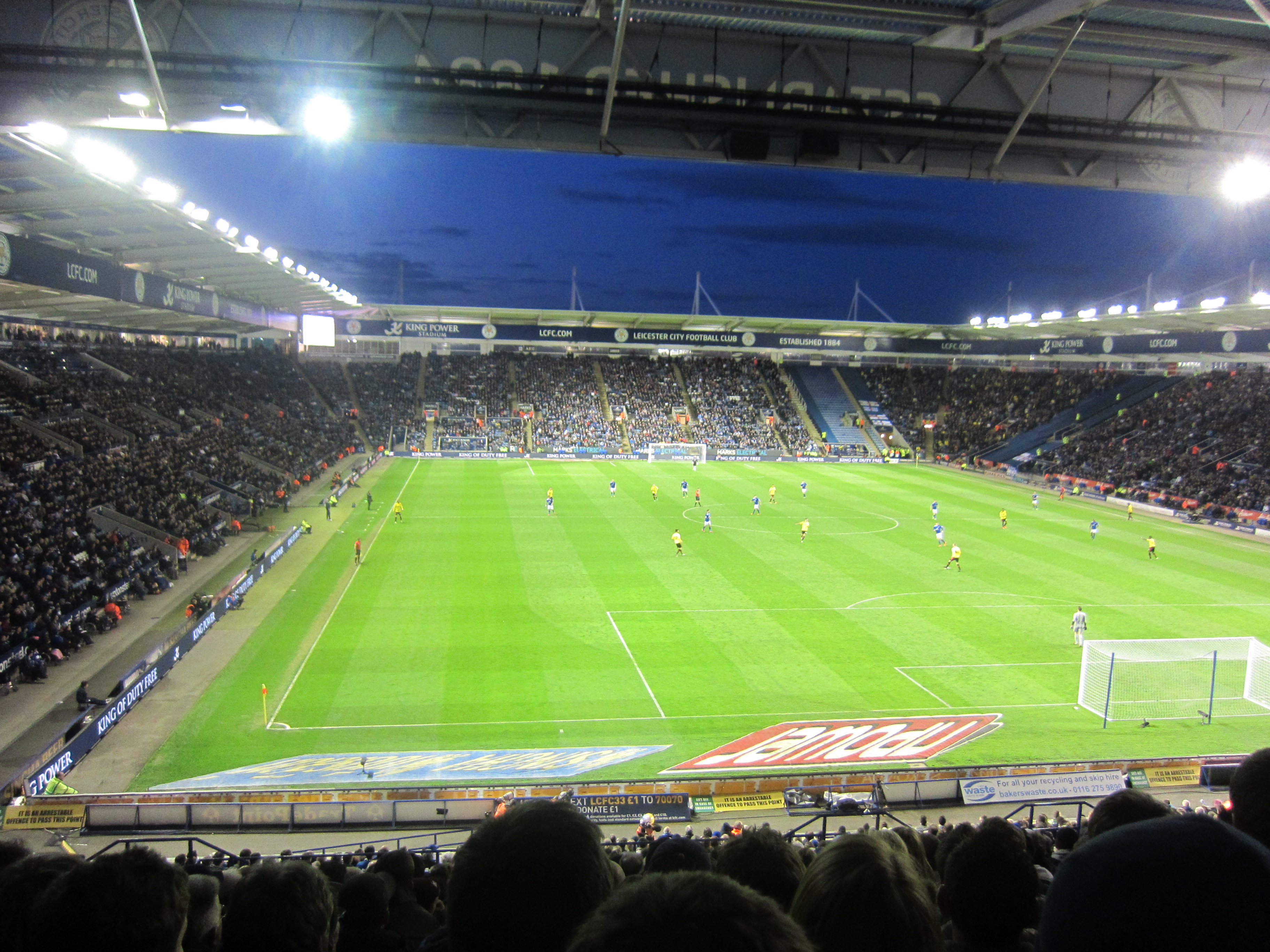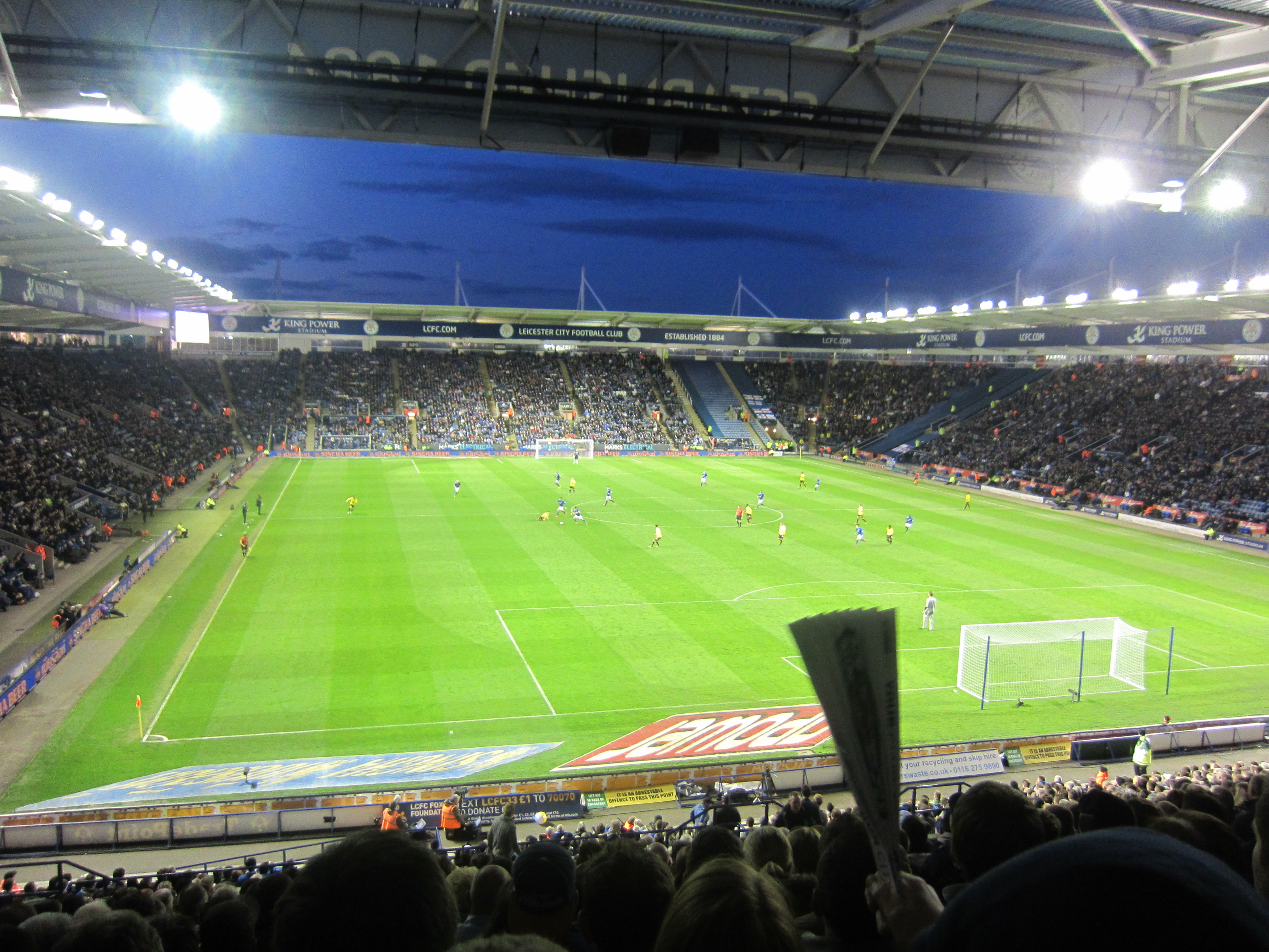 I arrive at Leicester station two hours before kick-off. There are not any signs of a football match being on. On the way to Leicester’s King Power stadium, built in 2003, I take a walk past the site where their previous and famous ground Filbert Street was located, tightly squeezed in between terraced houses. You can see the two houses, which served as entrance gates to the ground, only halfheartedly having been restored to their original look. A student’s college has been built on part of the old pitch, but the other is just laying waste. A sad sight.
