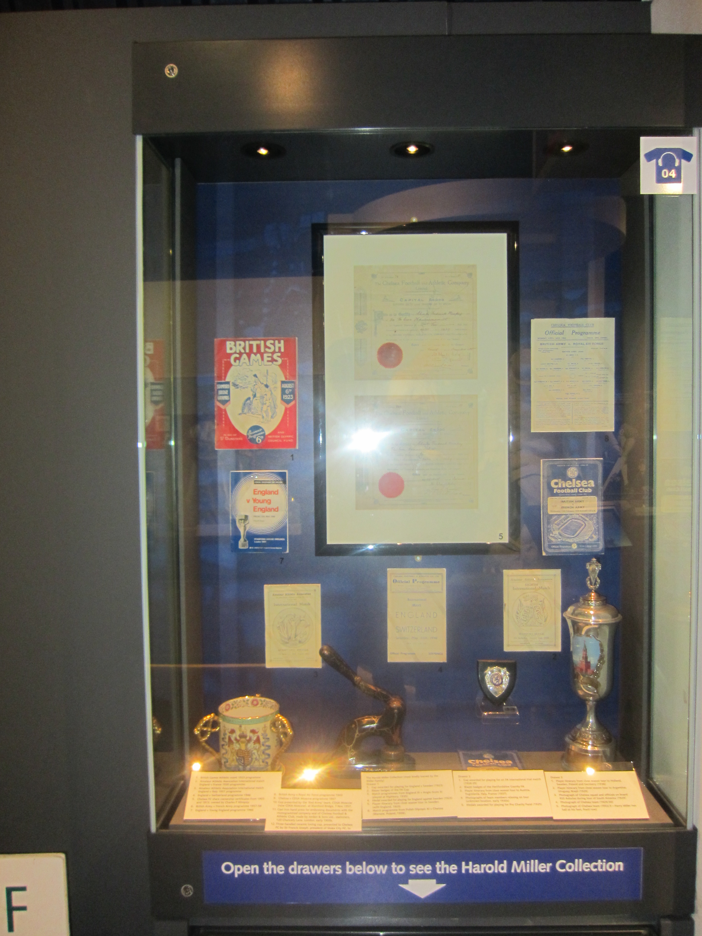 These sections alone were, to me, worth the entrance fee of £ 10. All achieved without that many objects. Perhaps the most interesting collection of objects in the museum is the “Harold Millor Collection” to which there is allocated three drawers in a display case. And it is among them you find a travel itineray from the 1929 tour. But the presentation of this collection is one of the less fortunate examples of the haste with witch the musem has been built. There is no text telling who Harold Miller is/was. As he features on a match photo, you can guess he was a footballer. But what was special about him? And the collection? Besides, the drawers are difficult to pull out and the informarion about the objects sparse.