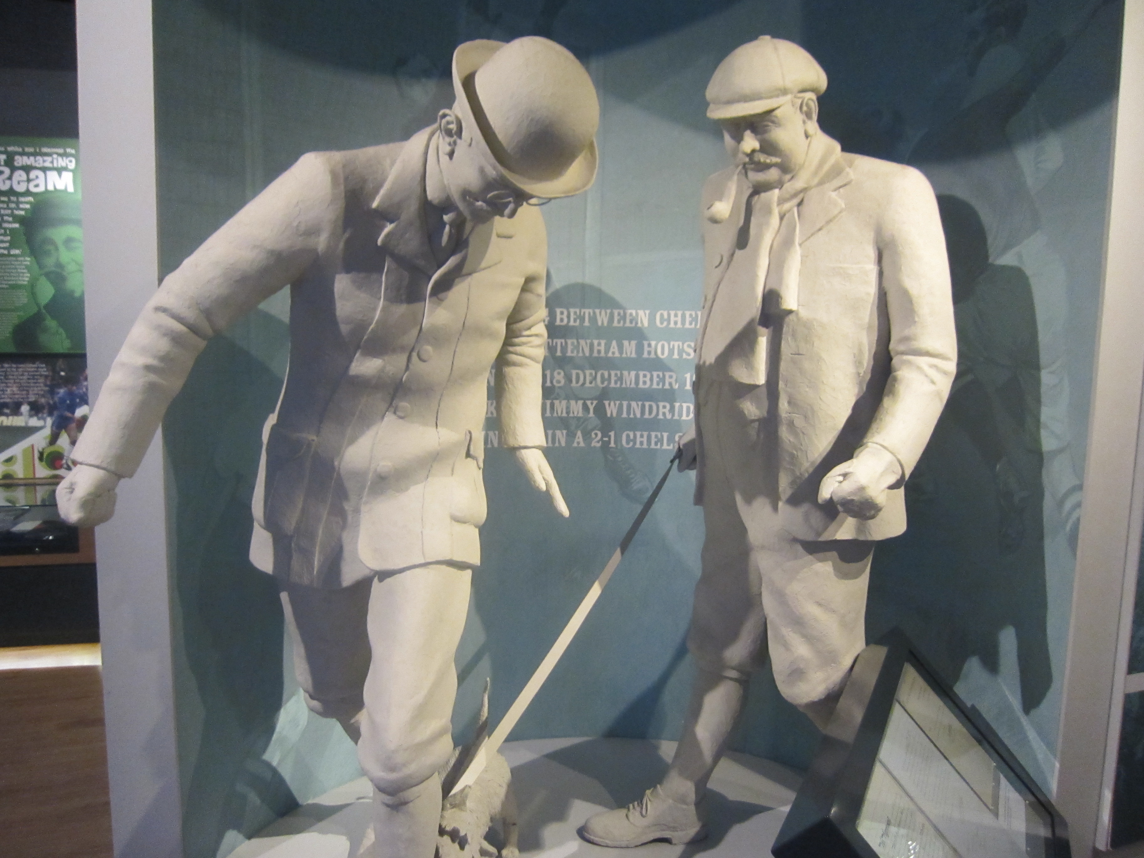 Apart from the sometimes rather boastful texts, statues of players are used to help the story along when there is a shortage of museum objects. Personally, I don’t like them – I find them a bit ridiculous, but they seem to be a trademark Chris Mather thing with statues also crammed into the Arsenal museum and the now closed Manchester City museum. But I must admit, that the first world war trench in a football museum (which is the iconic representation of WWI in all military museums) took me so much by surprise that I studied the section on Chelsea during the wars more carefully than I would have done otherwise.