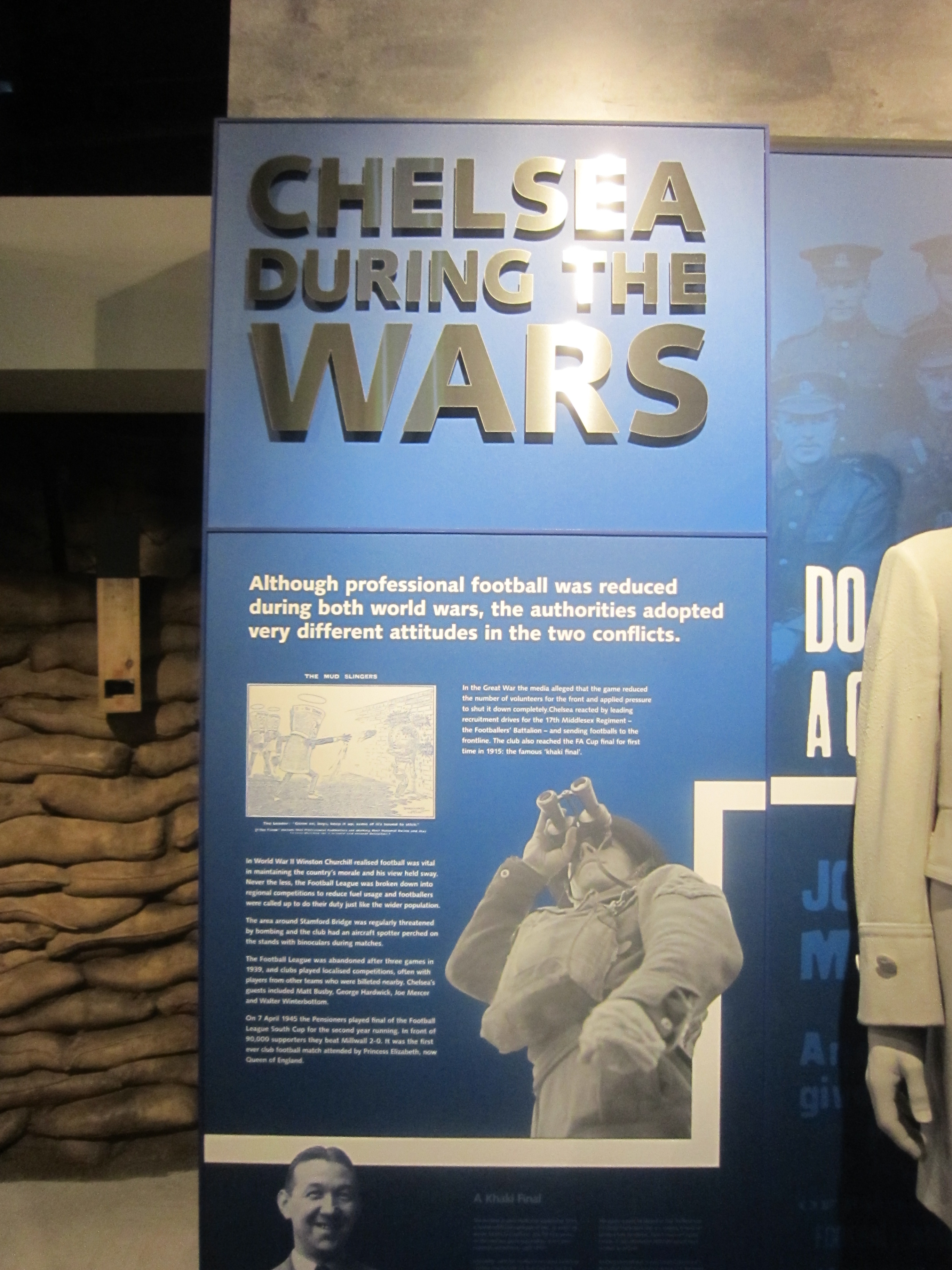 Having said all that, I think that there are a lot of good things in the Chelsea museum. It is probably club historian Rick Glanville who was chosen the themes on which the exhibtion focus. Which are the football ground Stamform Bridge, Chelsea at war, Chelsea’s international connections and “swinging London”. True, there are more sections like the shirt one, the “wall of honour”, “What it takes” and a couple of others. But the first four stand out, because they really give you something to reflect on.