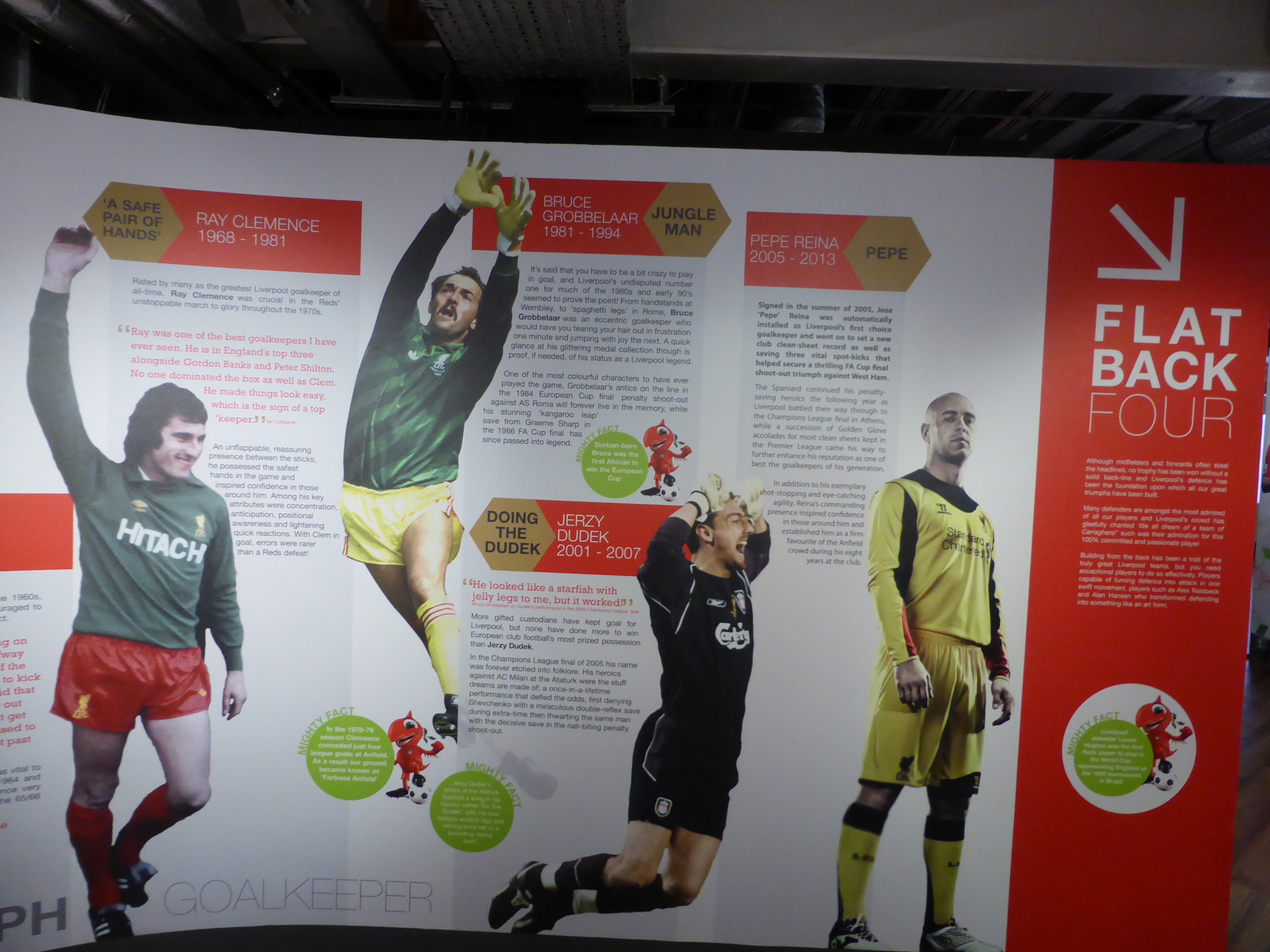 From being primarily a chronological exhibition, with very long descriptions of football at the start of the 20th century, in the 1950’s and the 1970’s, the museum is now predominantly a ‘hall of fame’. After the first few displays on the story of Liverpool FC being founded to replace Everton, who had moved from Anfield, most of the space in the museum is taken up by huge photostats on great goalkeepers, great defenders, midfielders and strikers, followed by the managers and triumphs in Europe.