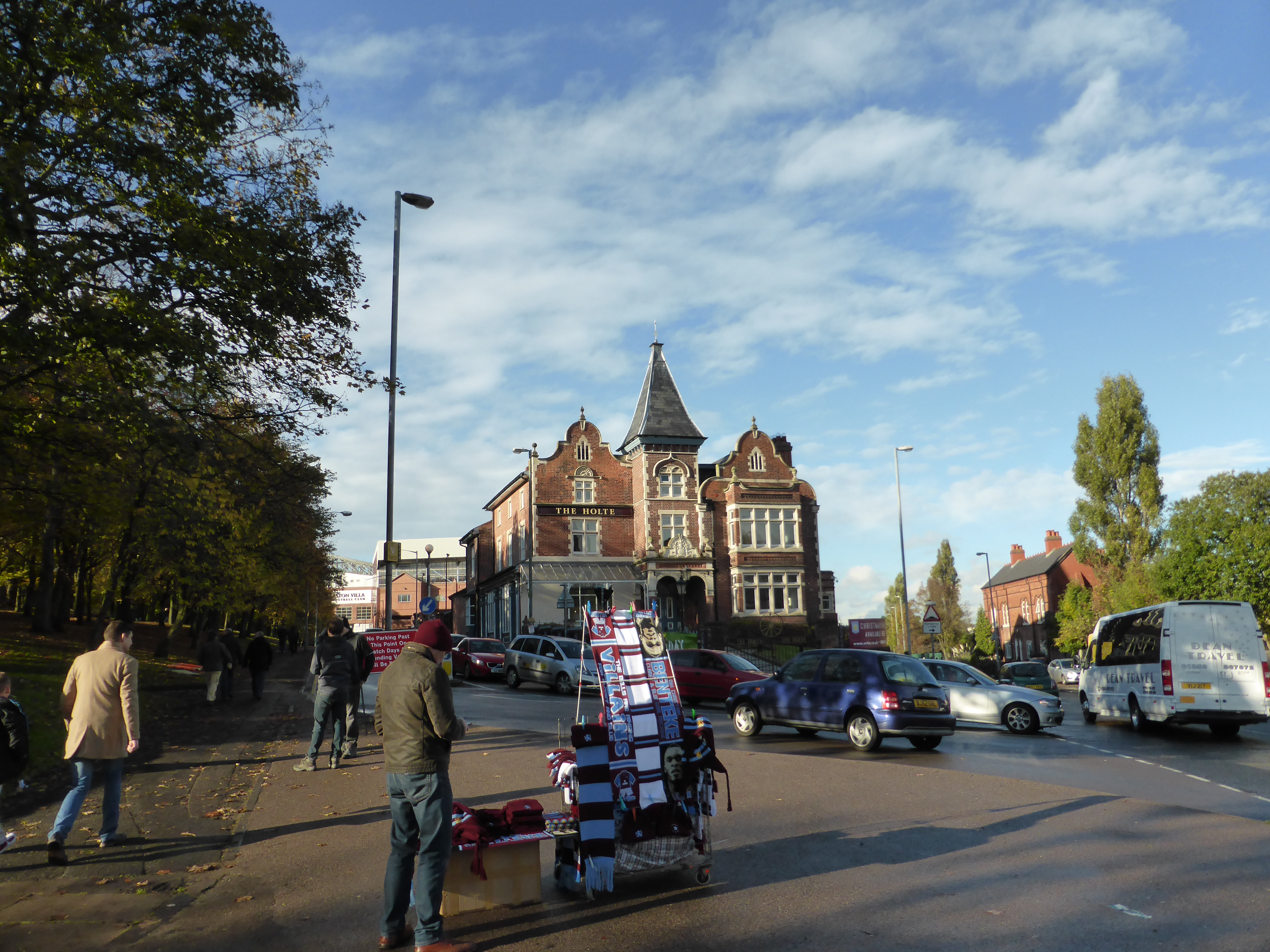 A couple of months before, I had heard a presentation on Aston Villa and their supporters at a conference at the National Football Stadium. Apparently, all the “old” Villa supporters have moved away from Aston, and the area is now dominated by ethnic minorities that do not identify with the club. To remedy this, the club had made trials of special sections of the ground as non-alcoholic and non-pork-meat areas, to make the “new locals” feel at home. According to the presentation, some people had attended – but a lot of “old” fans had been enraged of this attack on the central ingredients in their match day experience – the pint and the pie. At the Holte end, the crowd is almost exclusively white, whereas the staff is ethnically very mixed.