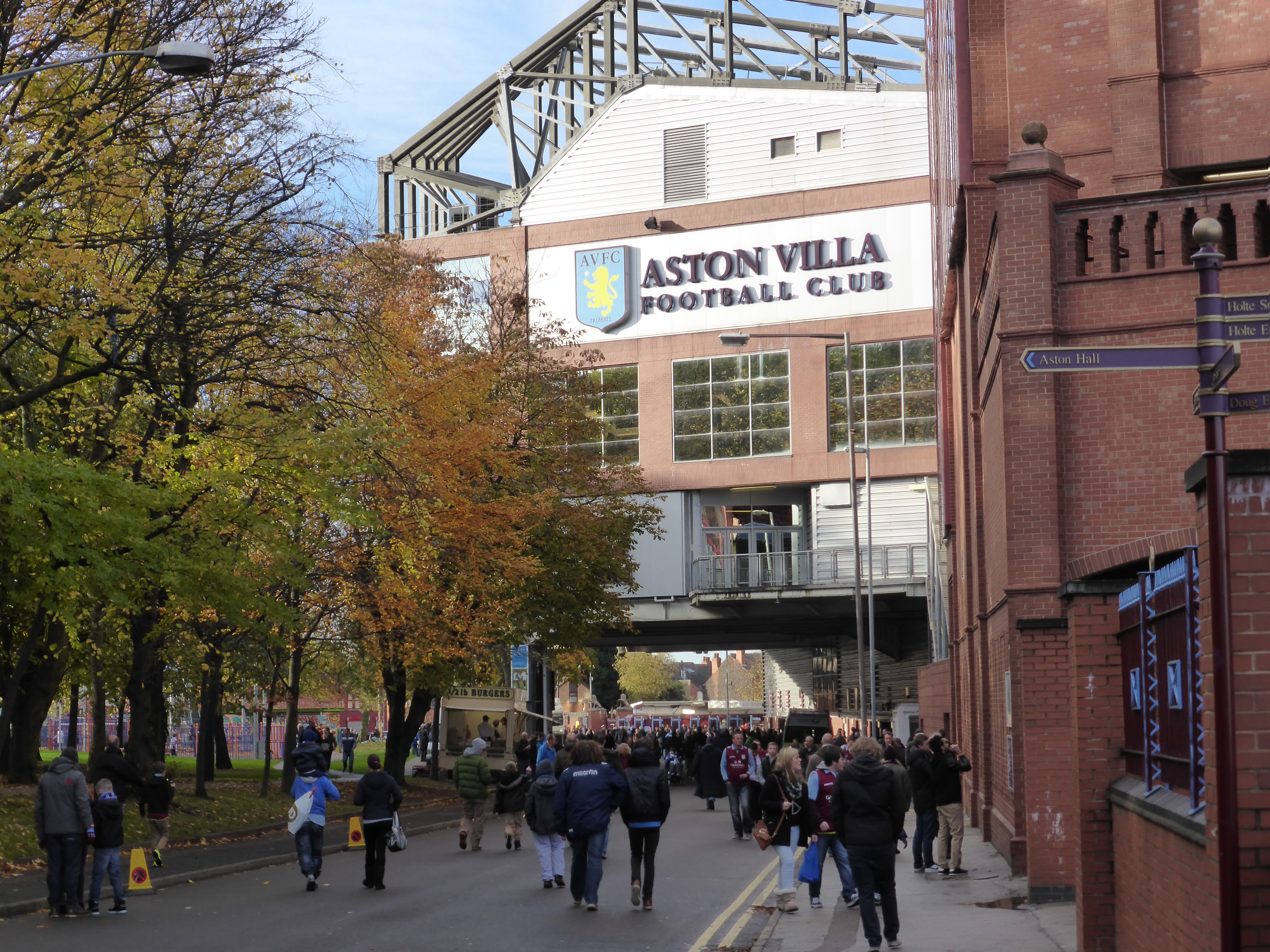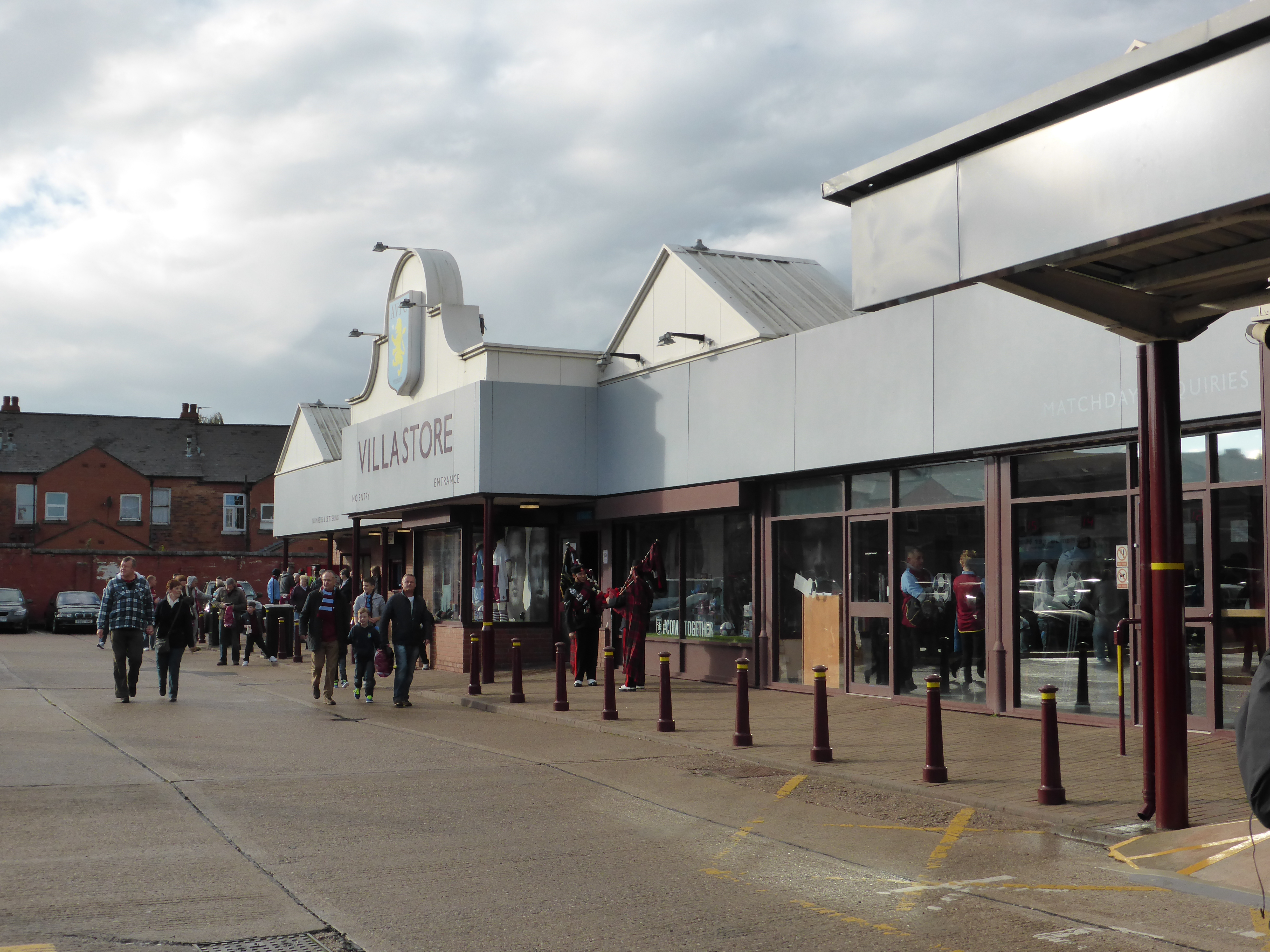 I am here in Remembrance weekend, so the atmosphere outside the ground is quite good. Representatives of the armed forces are playing bagpipes, displaying their tanks, selling puppies. And the Aston Villa fans are expecting some much needed joy against newly promoted Cardiff after a disappointing start to the season. I get my ticket at the box office for the Holte End – and have a look around the souvenir shop before going looking for some lunch after flying over from Denmark early in the morning. The range of food choice is bitterly disappointing. No pies, no fish ‘n chips, no curries on sale outside the ground. Just extremely flat-looking burgers.