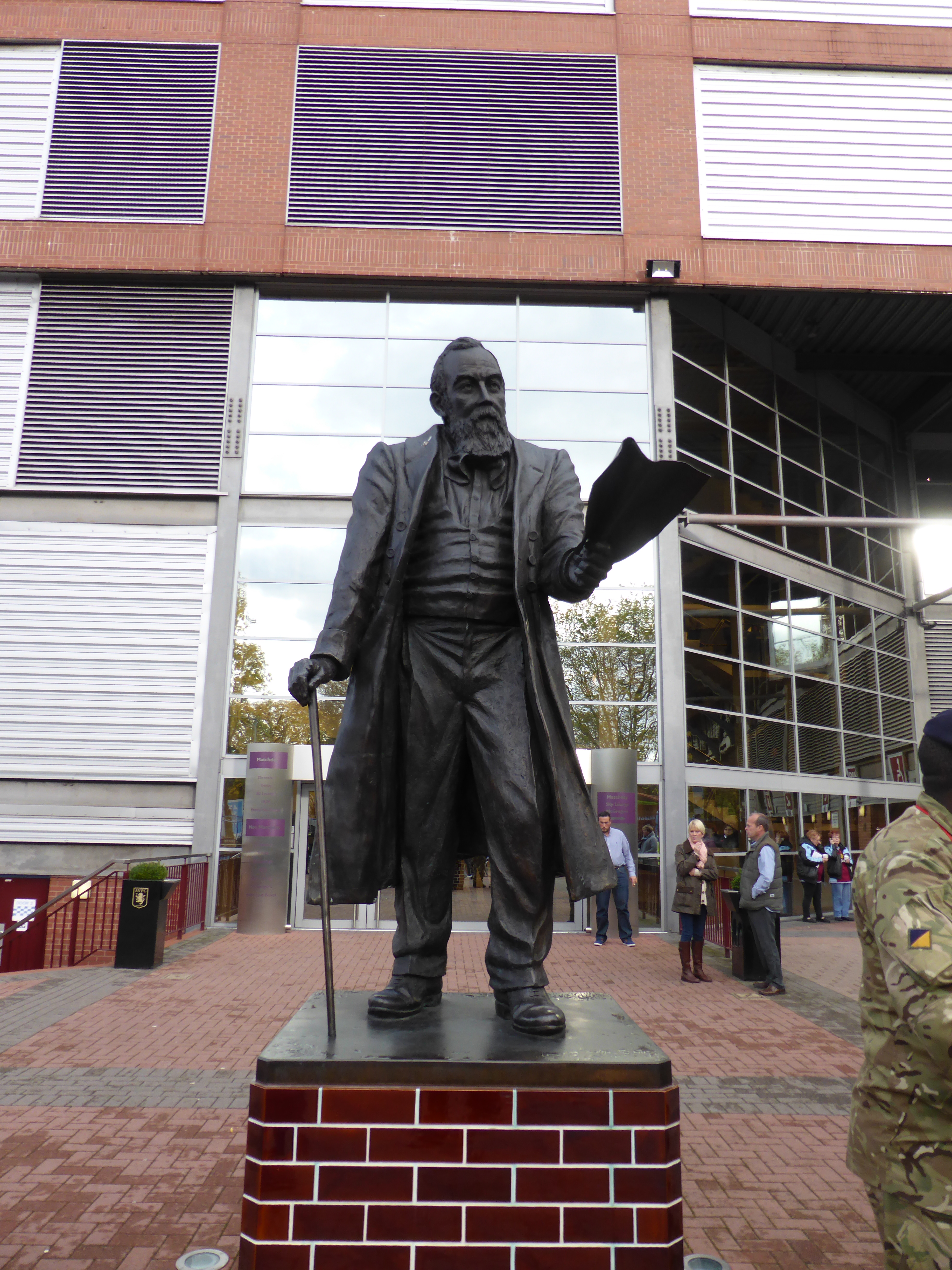 Although Aston Villa apparently have abandoned plans to built a club museum, and have destroyed the remarkable architecture of Arthur Leitch, they still do something to hold on to their great history. Outside the ground, you find a statue of William McGregor, the Aston Villa chairman who was one of the founding figures of the football league.
