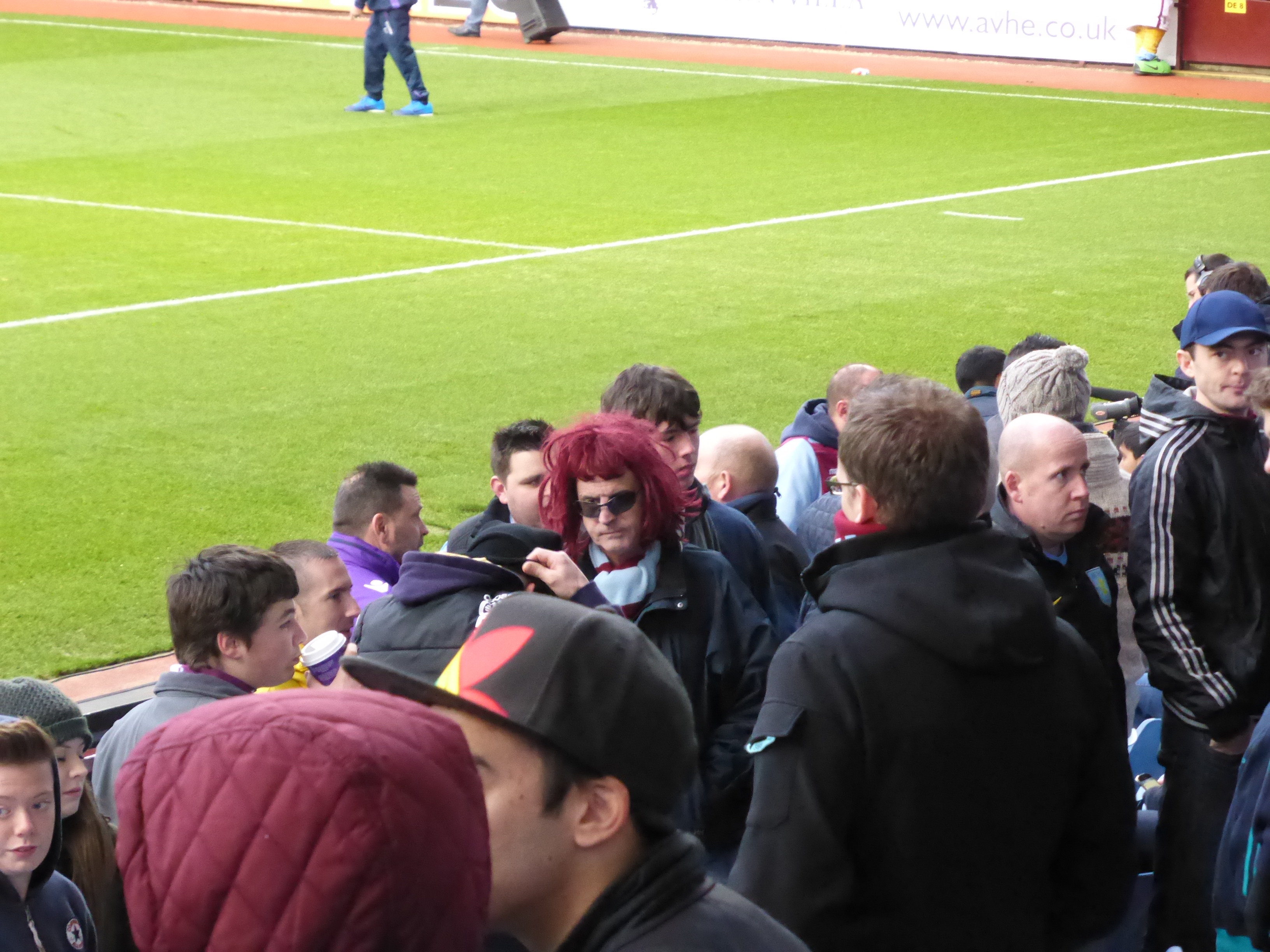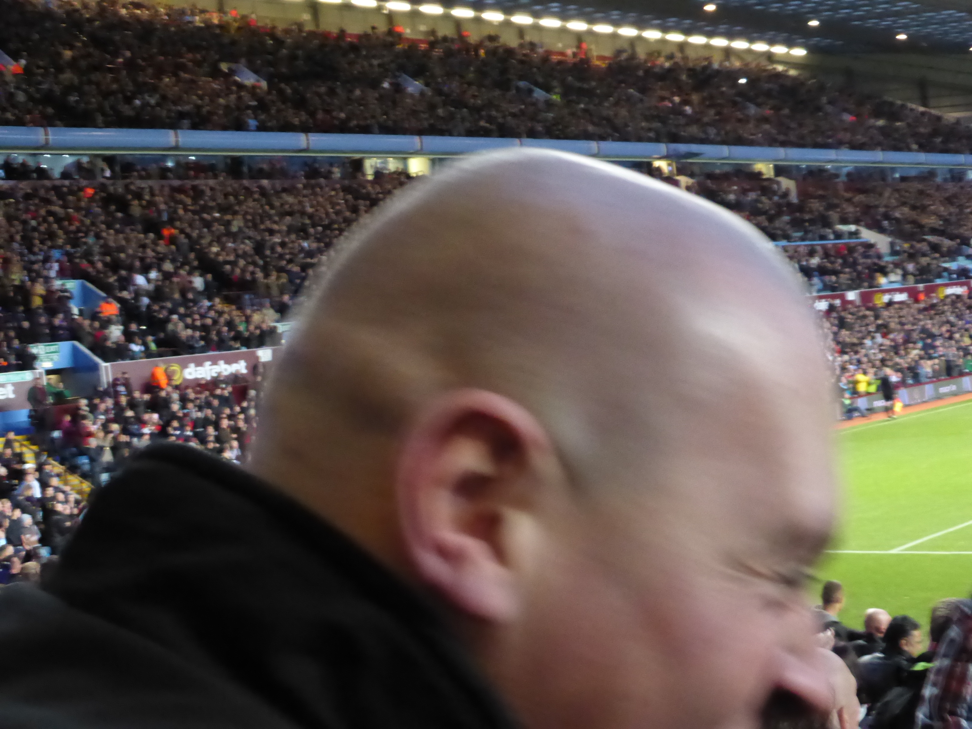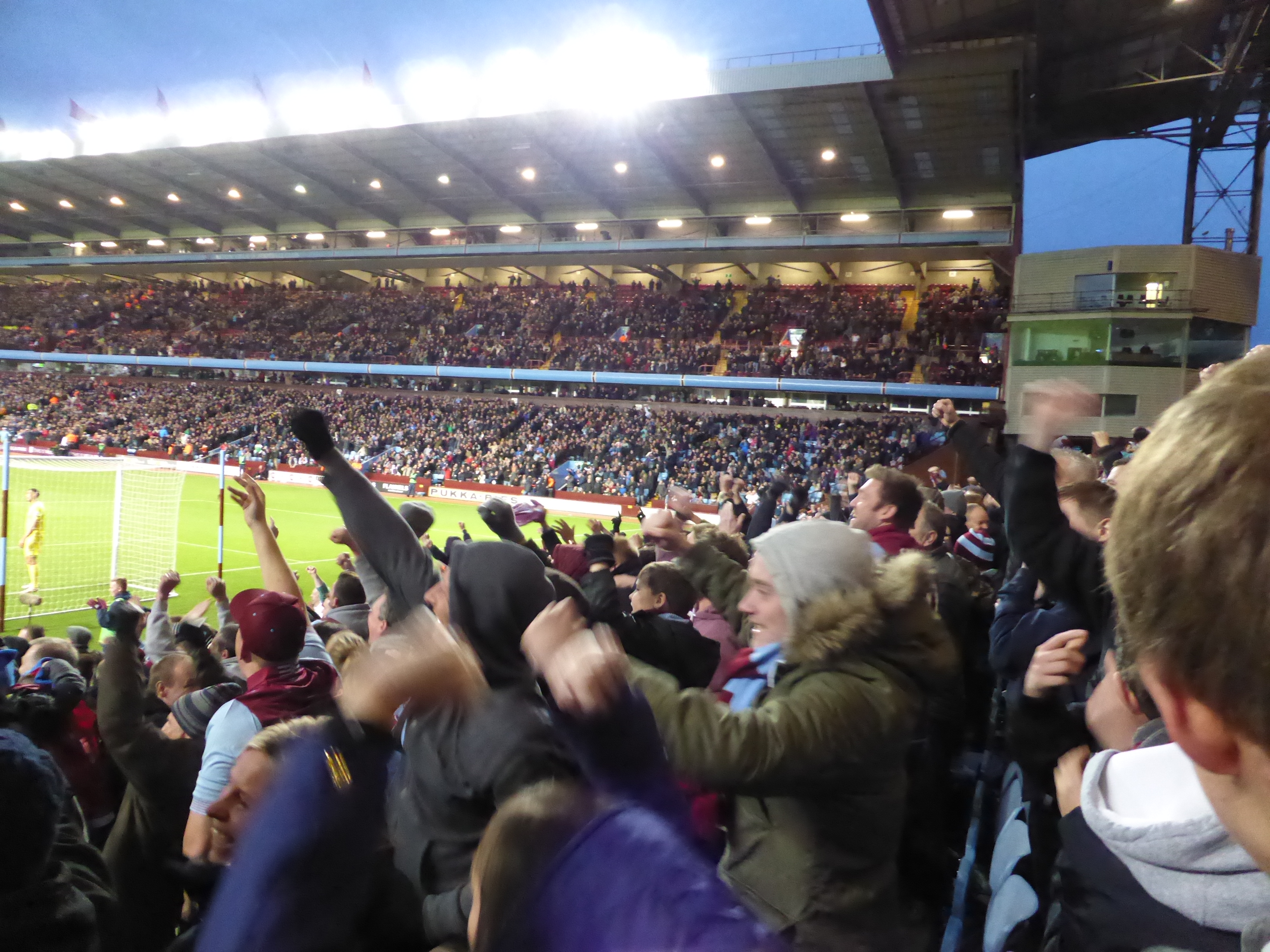 Although the match is a bit flat, and the Villa fans a bit disgruntled, I quite enjoy myself. The Villa fans around me know each other well, exchange frustrations – and a big skinhead guy in particular doesn’t conseal the torment he is going through. That is till Villa get a free kick about 15 minutes from full time. As the ball is teed up just in front of me – I get this inevitable feeling that is bound to be a goal. And it is! The skin head guy goes absolutely mental next to me.