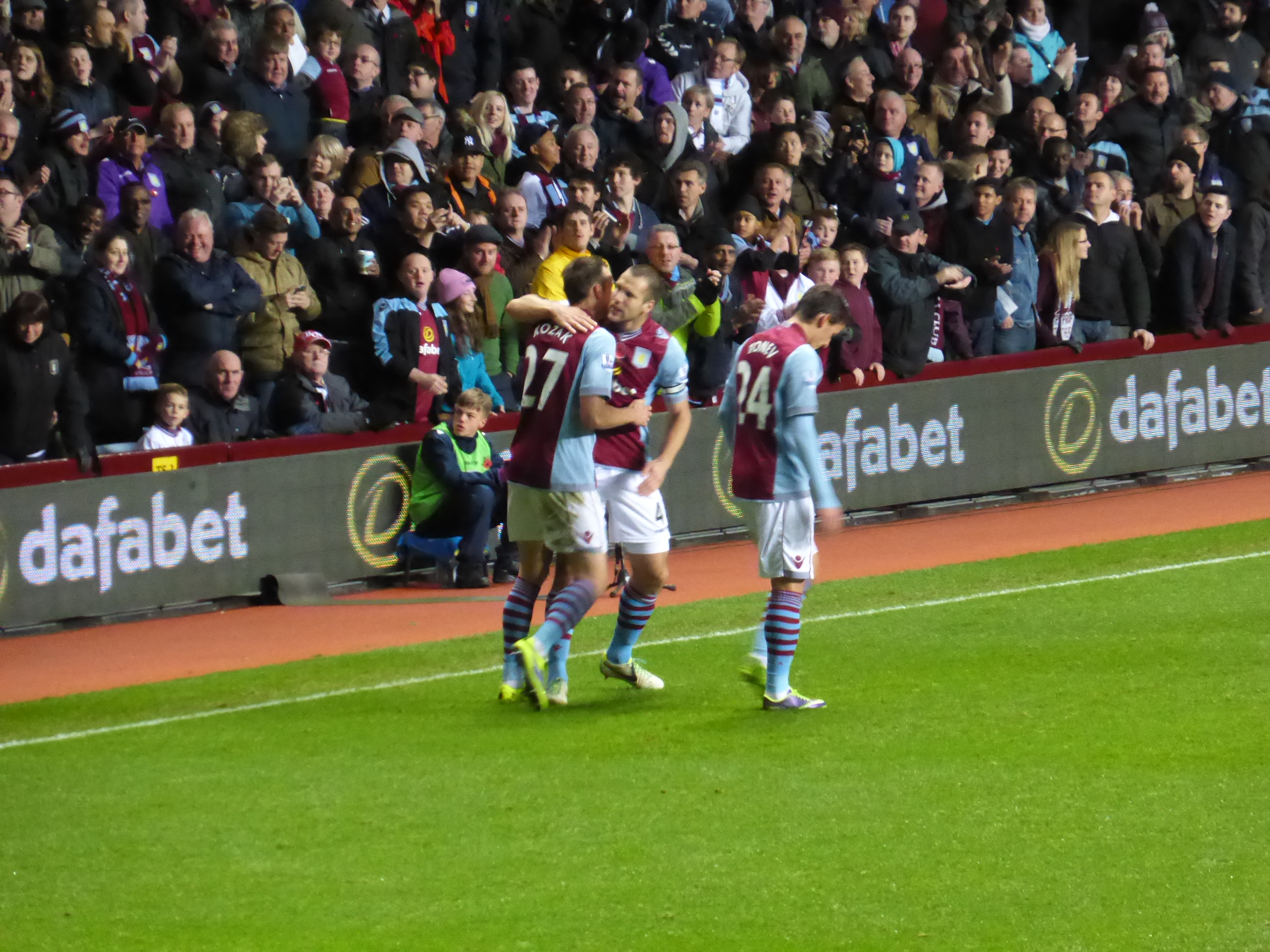 And who can blame him. Villa had only scored in one of their previous four home fixtures (in a 3-2 win against Man. City of all teams). And within a couple of minutes they repeat the feat. Two-nill. I hadn’t really seen that coming. But it lifts the atmosphere emensely.