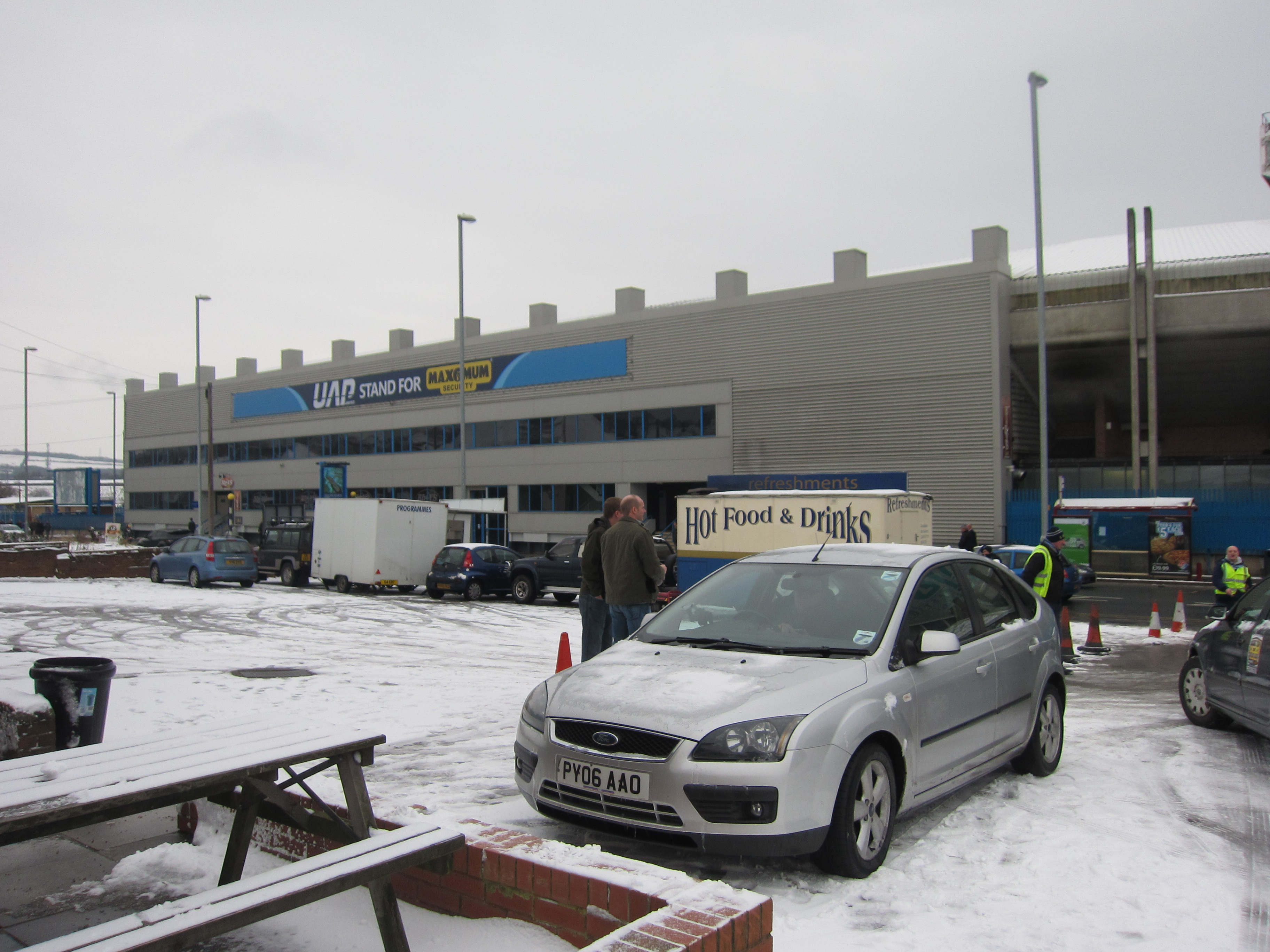 The weather has turned even colder than three days before, in fact, there are doubts whether the match will go ahead because of the wintry conditions. Many people choose not to brave the weather to go to the match, and the cold probably puts a dampener on those who do turn up.