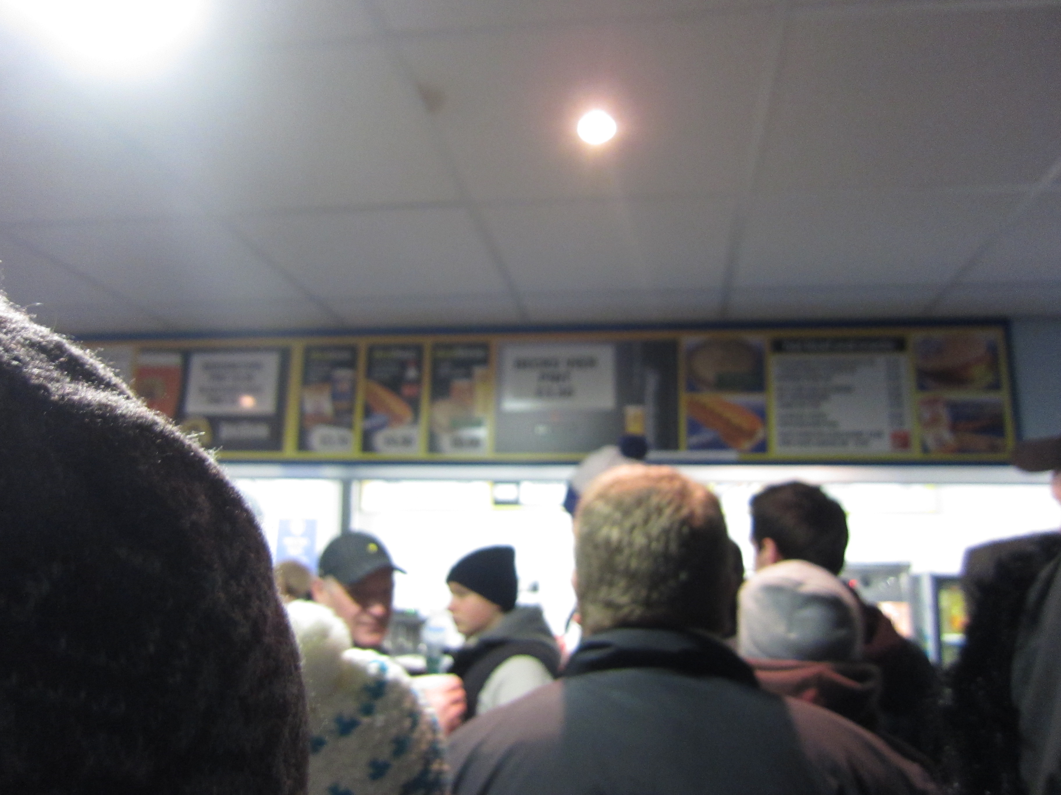 I decide to go to the ground early to have a look around. There are a few stalls along Elland Road, but not the usual build-up of anticipation around the ground, although “Billy’s Bar” and the “Old Peacock” seem packed for the match. I decide to buy my pre-match fish ‘n chips from “Gravely’s award winning Yorkshire fish ‘n chips”. It is not the greatest, but it is ok, although it is difficult to find a comfortable place to eat it. I have difficulties keeping my warmth despite wearing my Scandinavian winter gear. And I look in amazement on the local Leeds fans who turn up for the match in T-shirts!