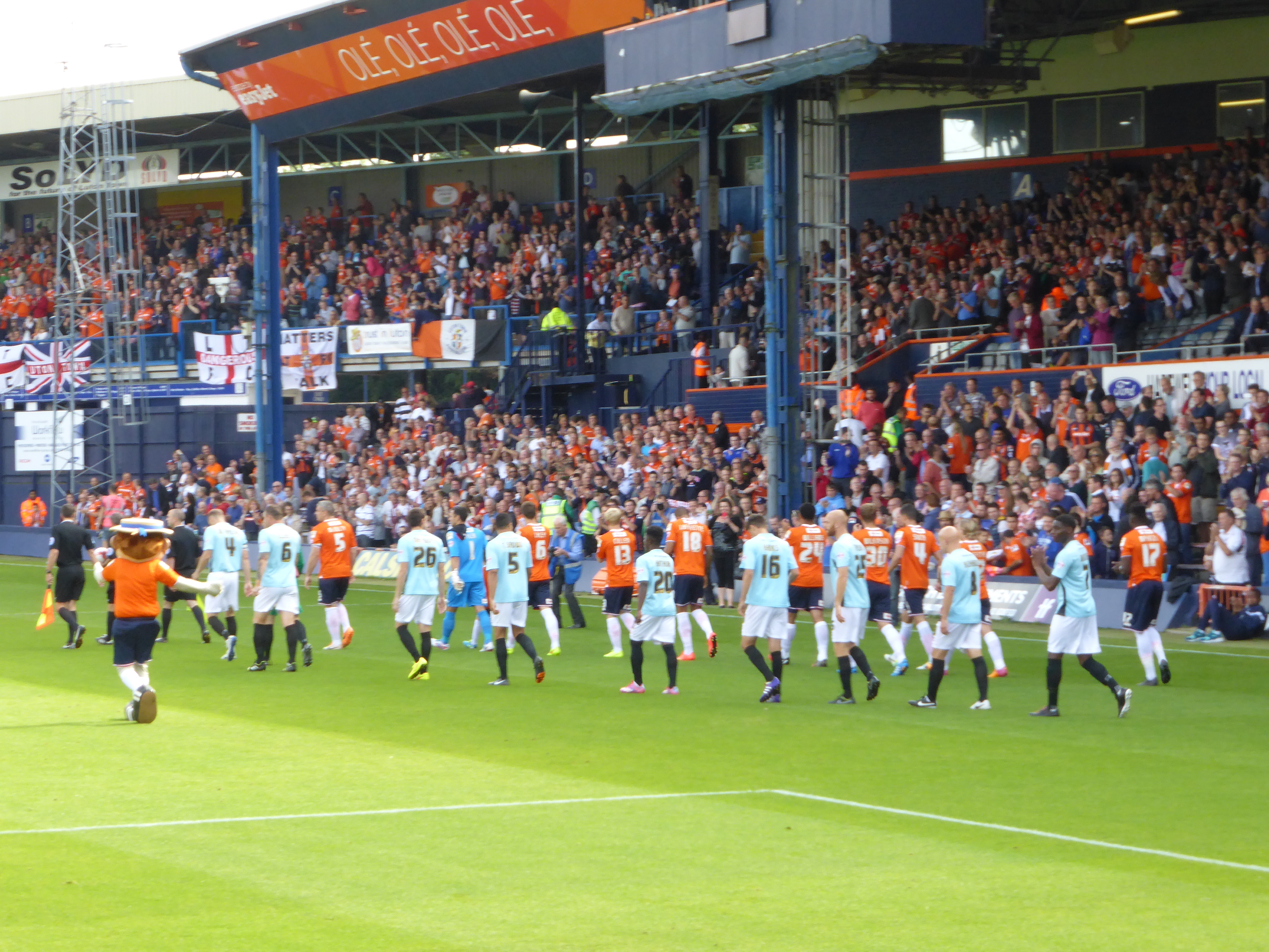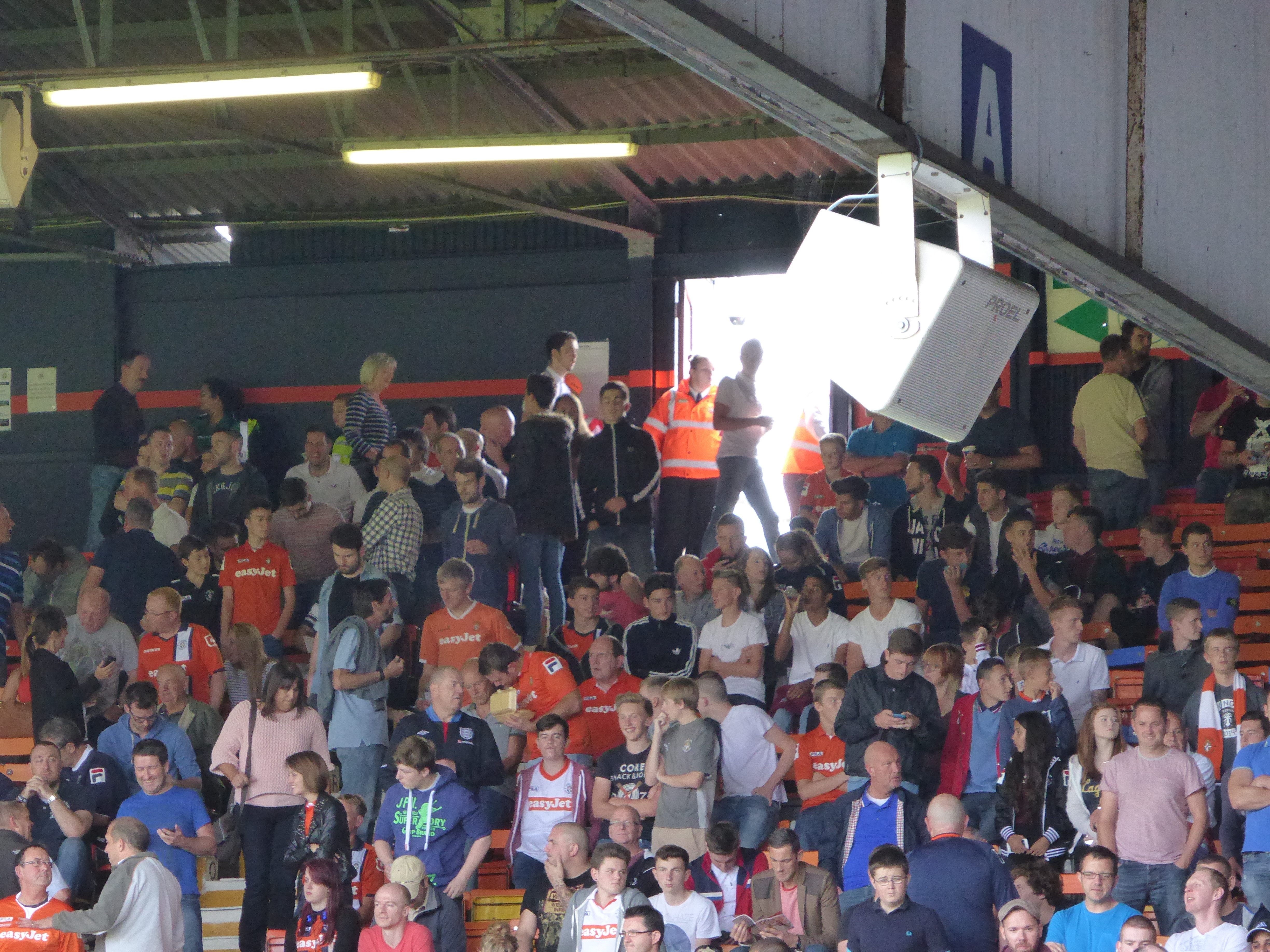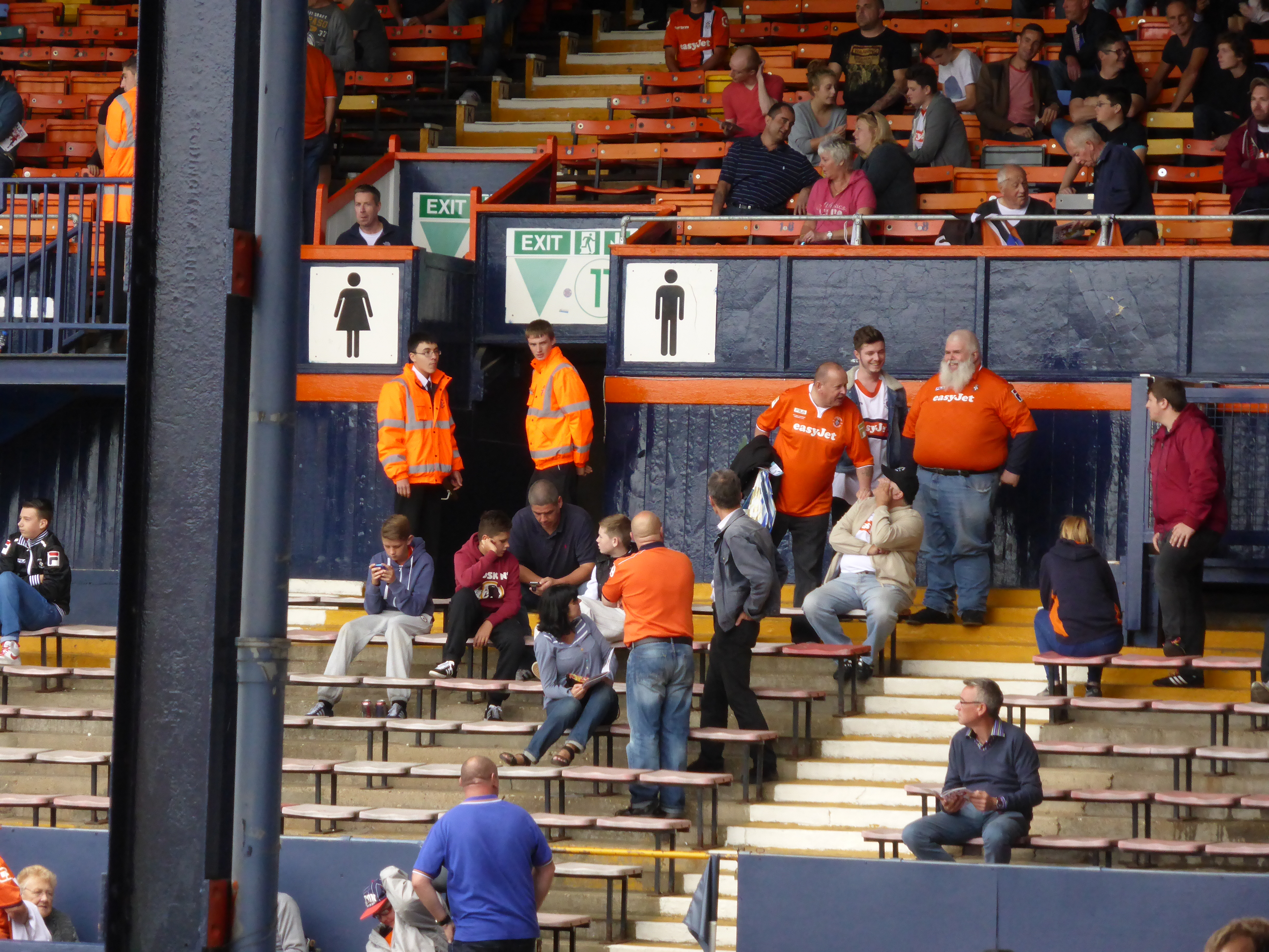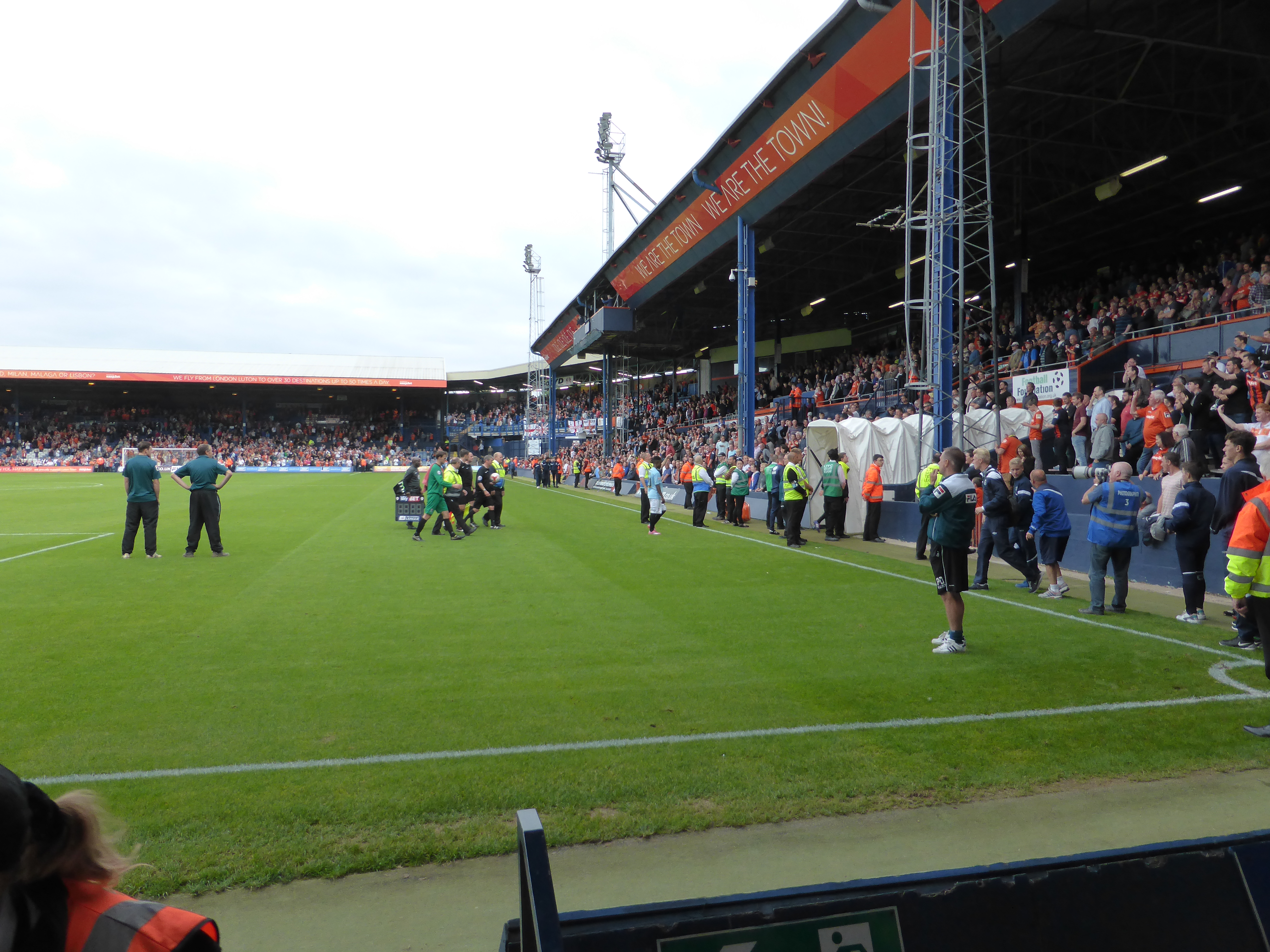 First sign of a football ground is the carpark for executive box holders. It does not look of much, and I have to remind myself that Luton last were in the topflight before the introduction of the Premier League back in the 80’ies. Since then, they went from bad to worse before being relegated from the football league. But this summer, they won promotion back to League 2, the fourth tier of English football. They have not benefitted from television and sponsorship money like the top clubs.