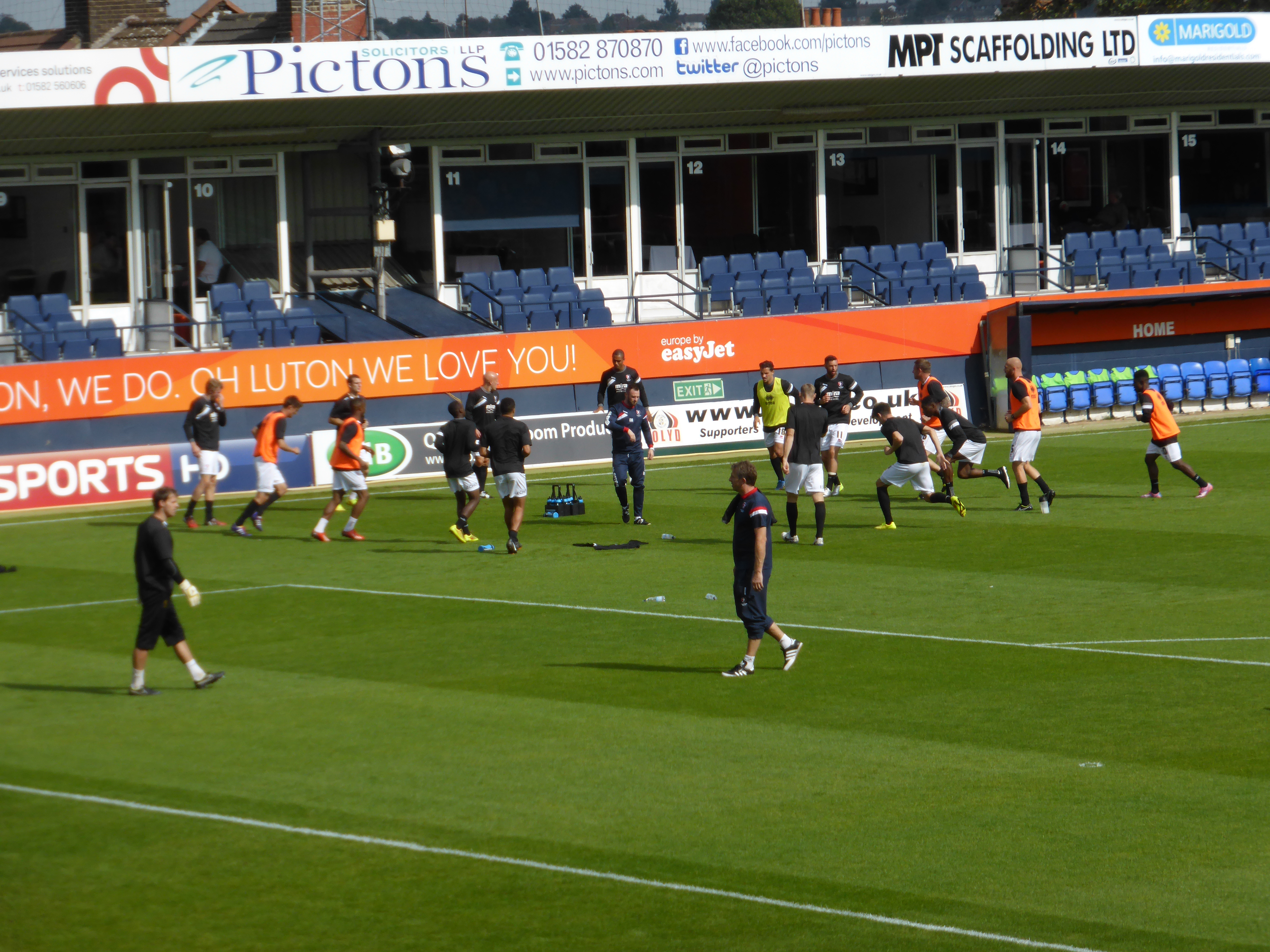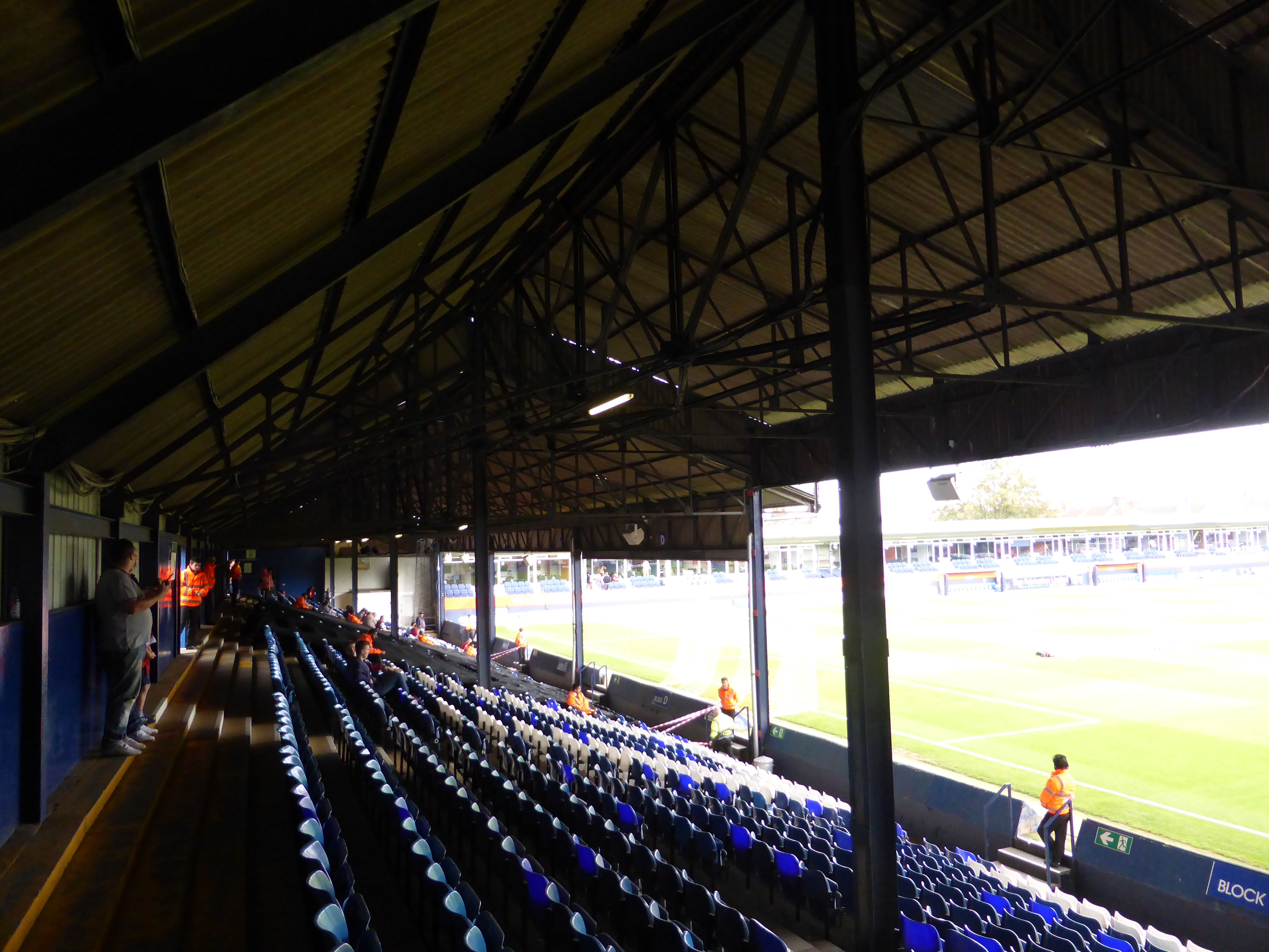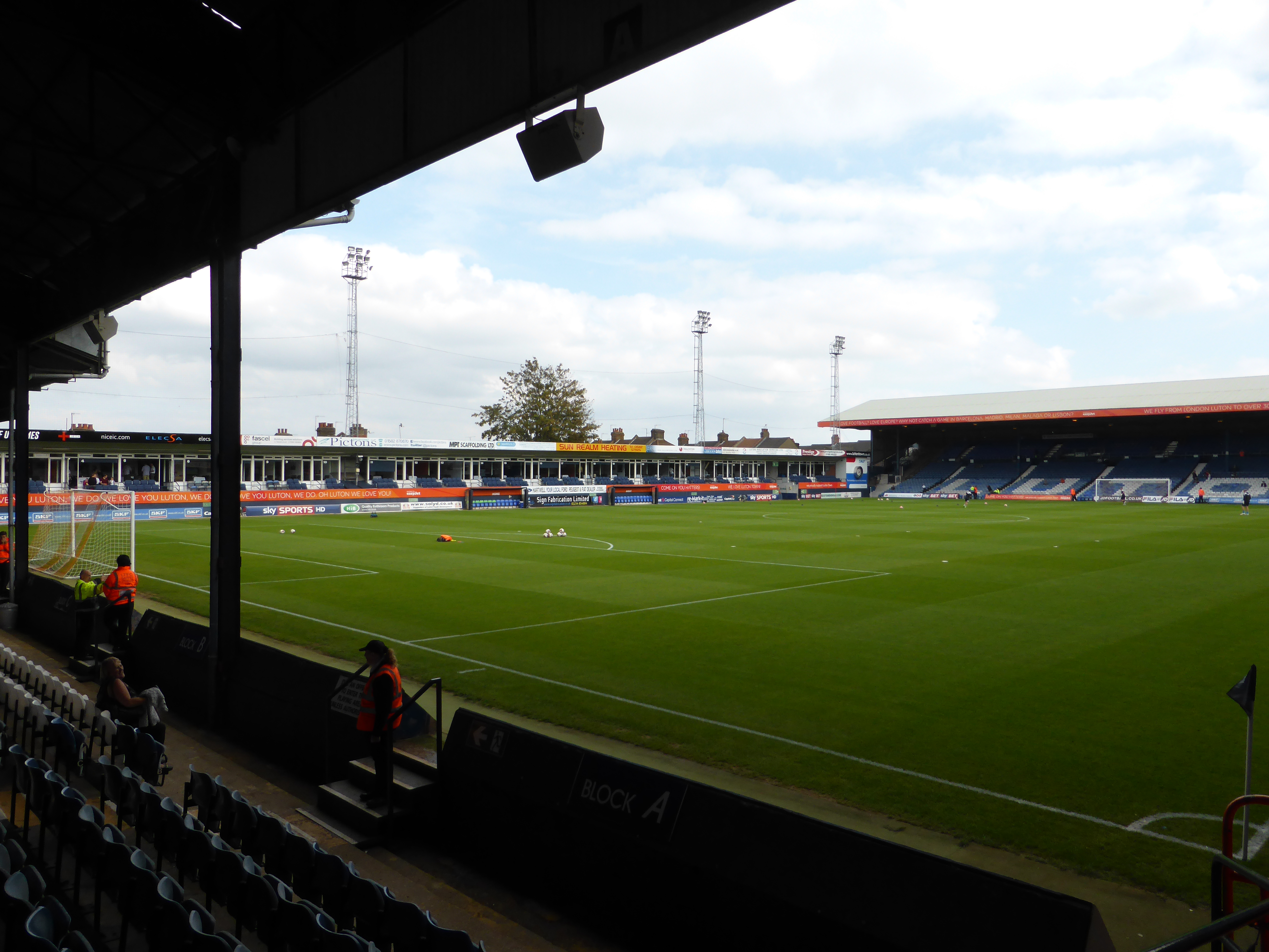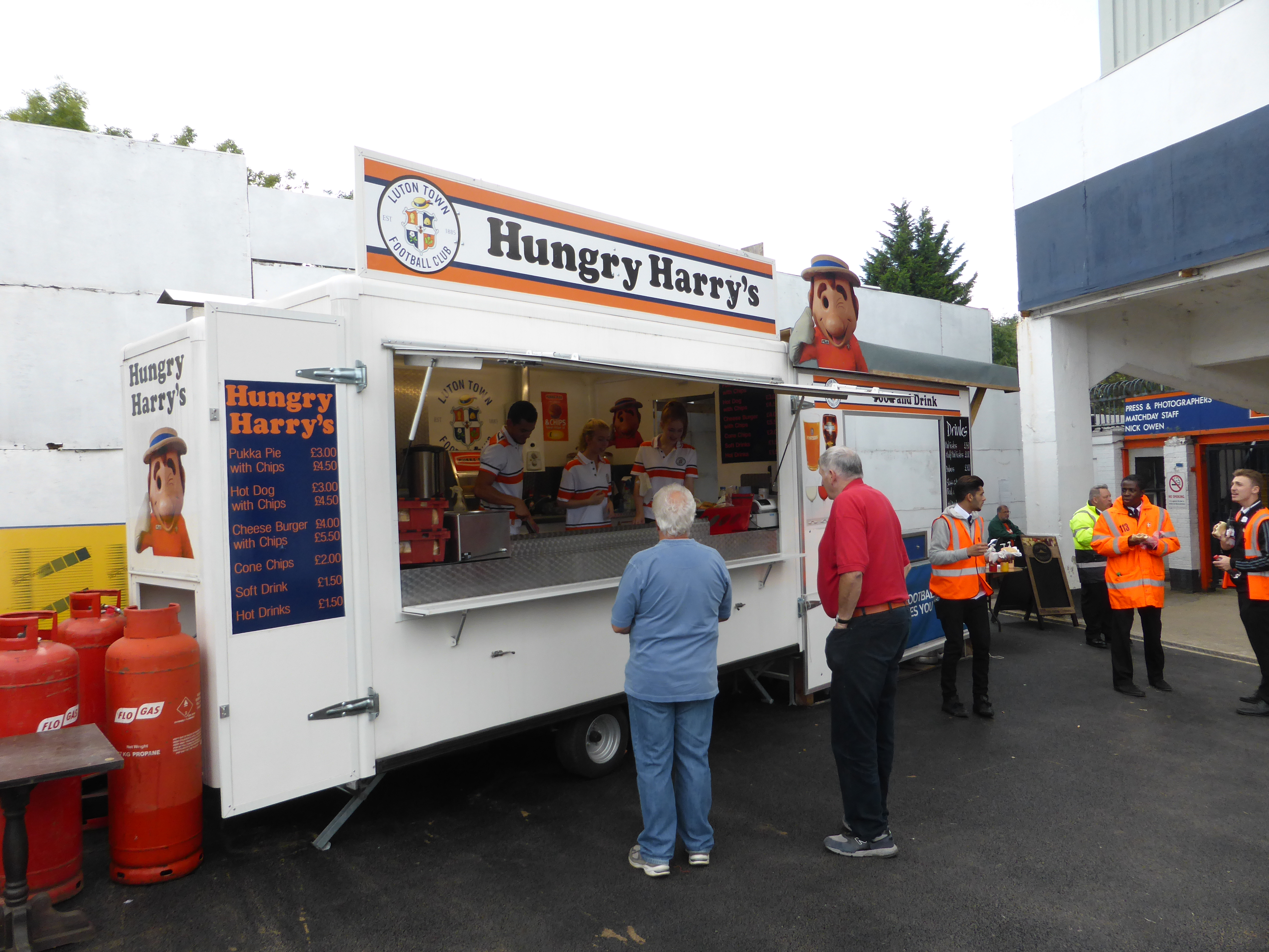 First sign of a football ground is the carpark for executive box holders. It does not look of much, and I have to remind myself that Luton last were in the topflight before the introduction of the Premier League back in the 80’ies. Since then, they went from bad to worse before being relegated from the football league. But this summer, they won promotion back to League 2, the fourth tier of English football. They have not benefitted from television and sponsorship money like the top clubs.