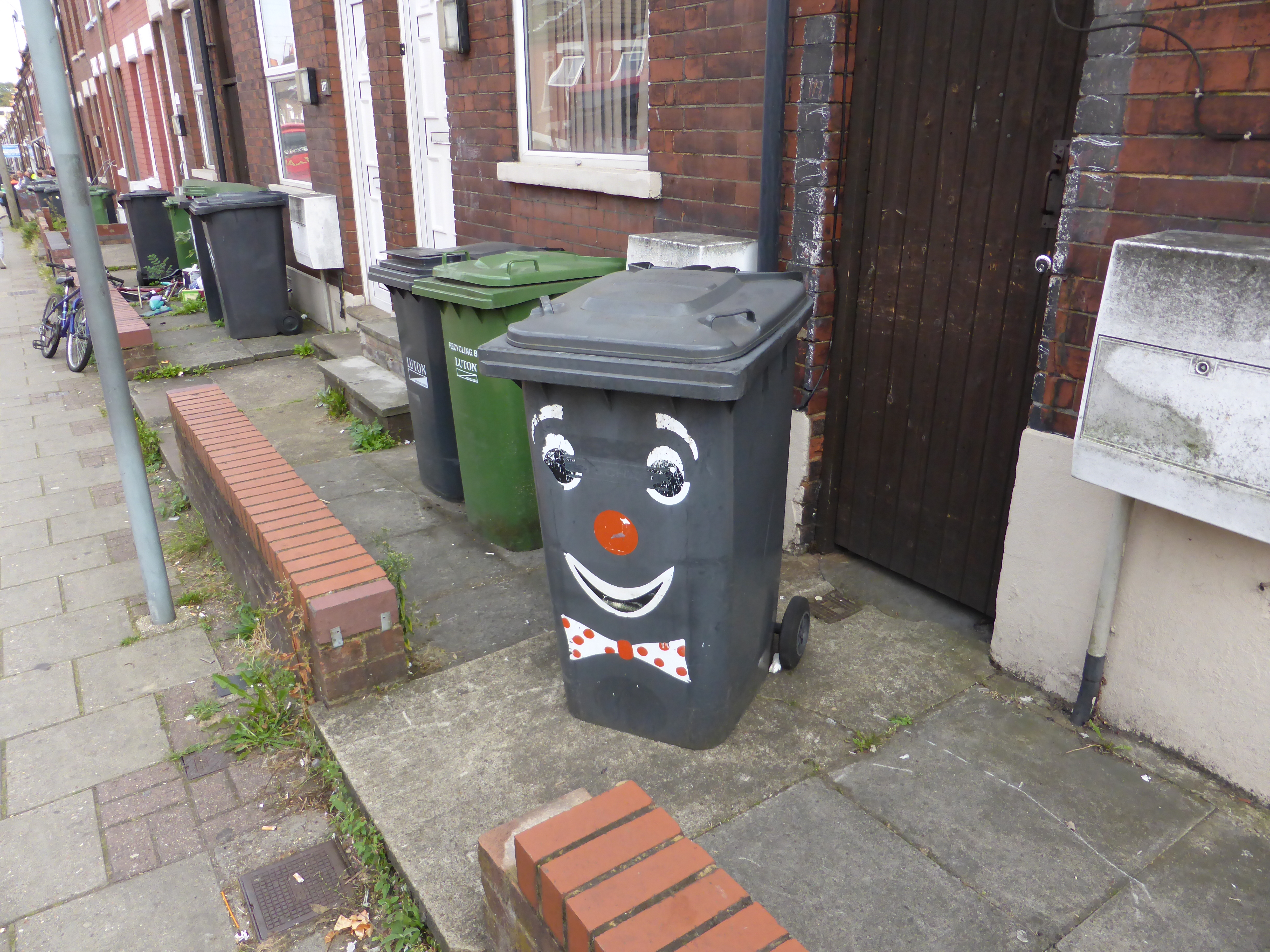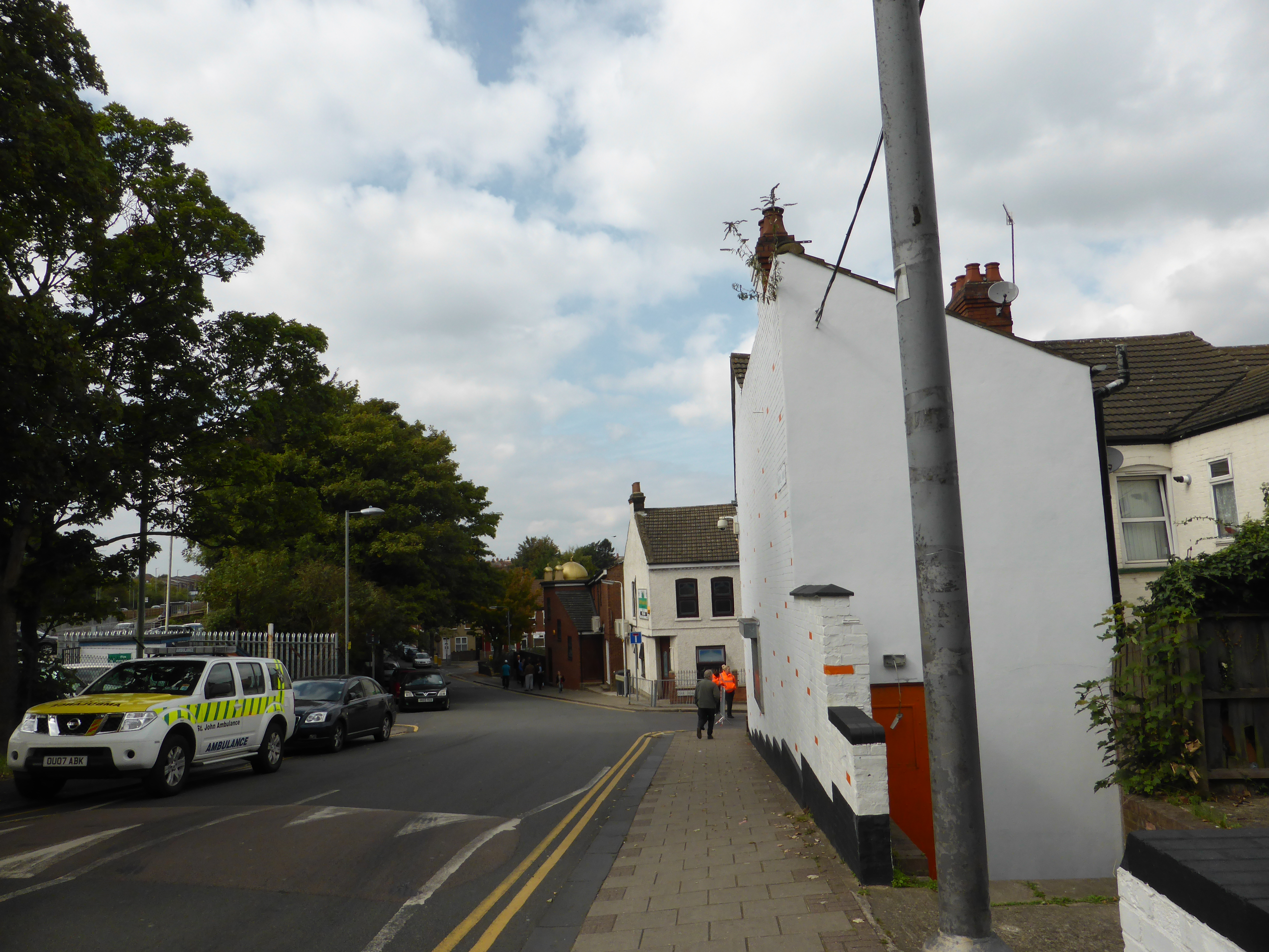 The disappointed Cheltenham supporters make for their coaches, the Luton supporters start to walk towards the city centre. Only a few of them – like me – head for the station. It is really a local crowd. Considering the bad reputation Luton seems to have, I have really enjoyed the afternoon. No unpleasantries, no hostile atmosphere. So for supporters who like to visit a traditional football ground, Luton is worth the trip. I even came across a welcoming Hatter-dustbin as I left. Still, though, the contrast between the all British white crowd inside the ground and the muslim community around the mosque just outside it, is remarkably stark and thoughtprovoking.
