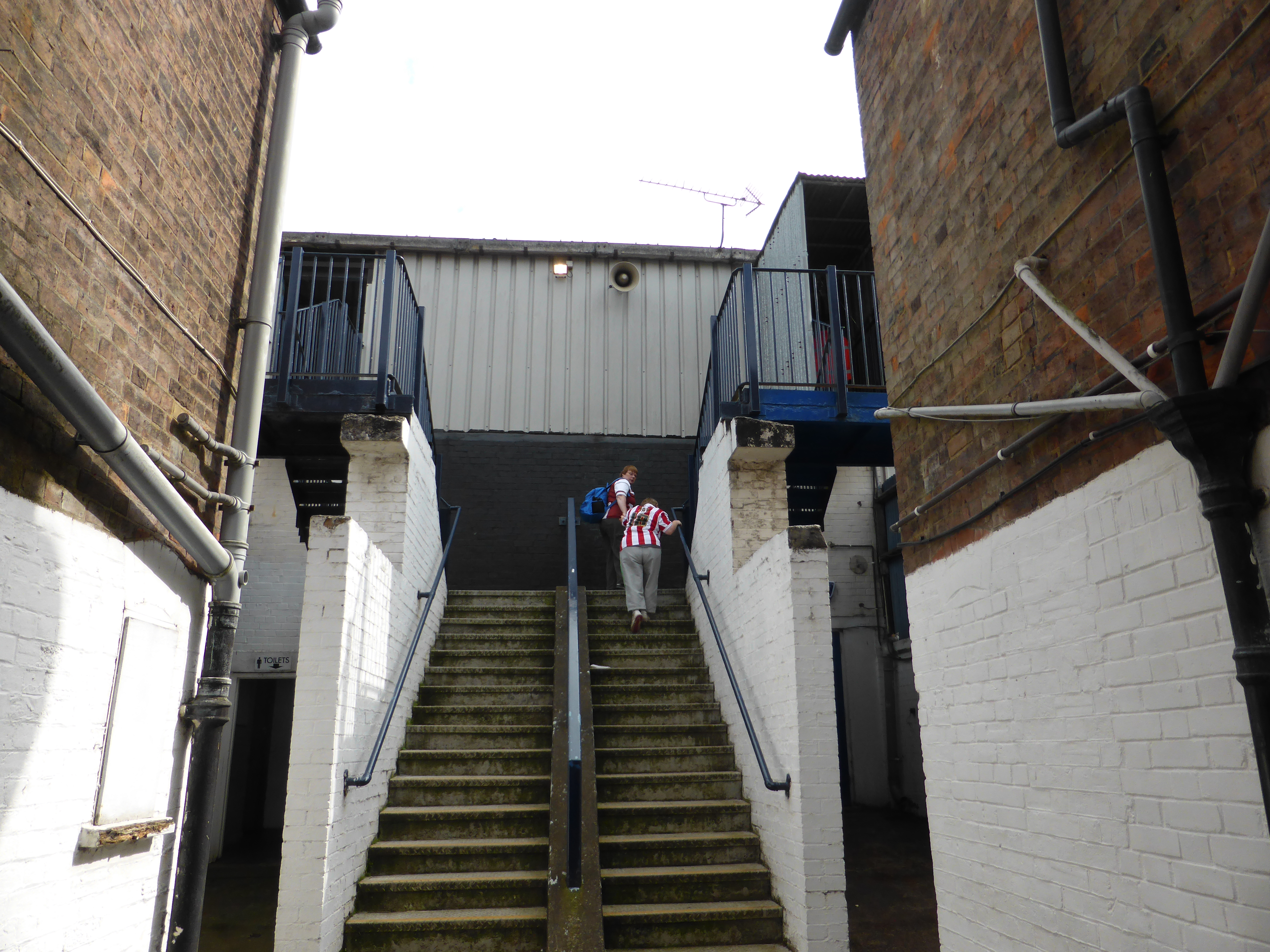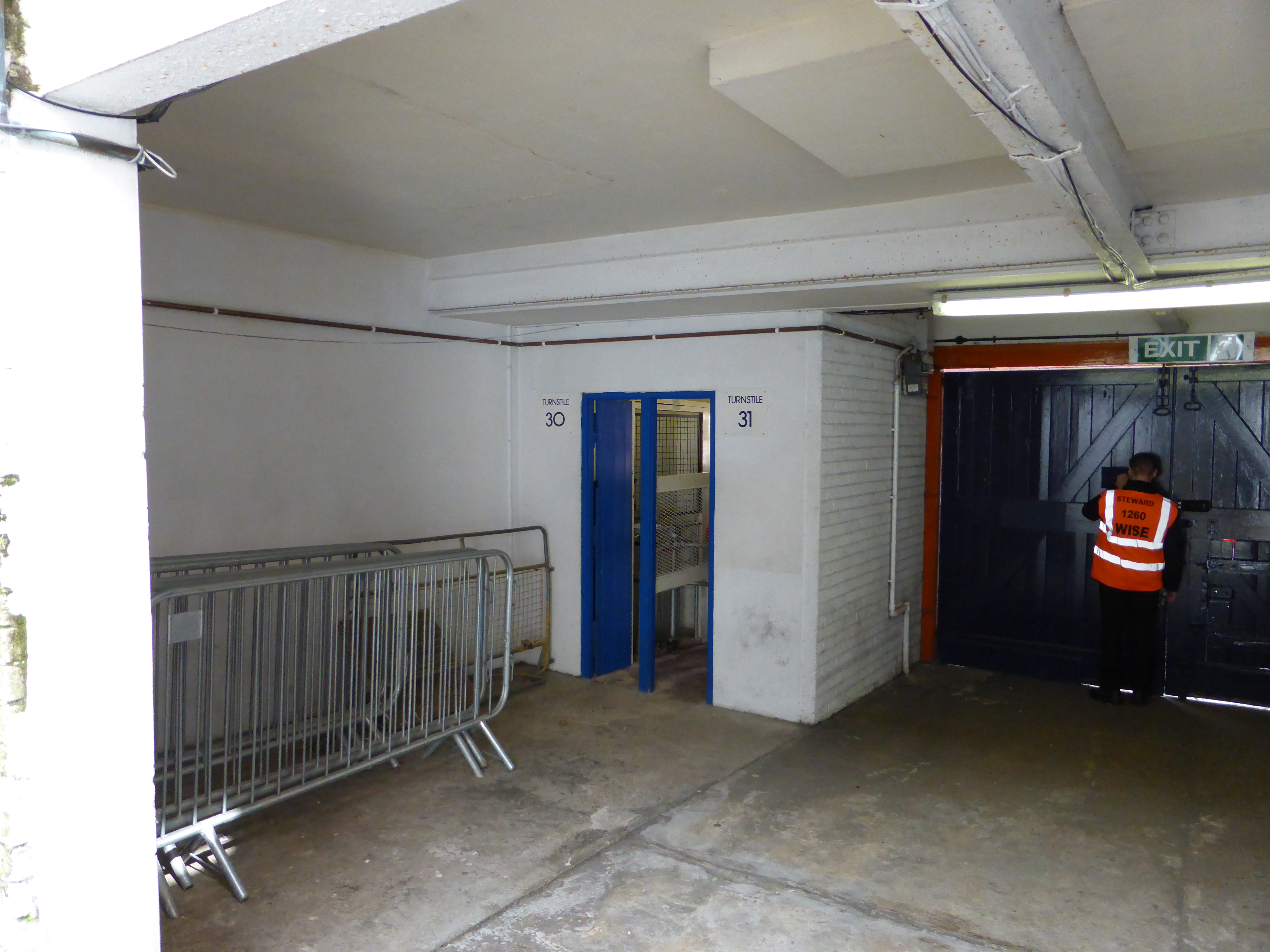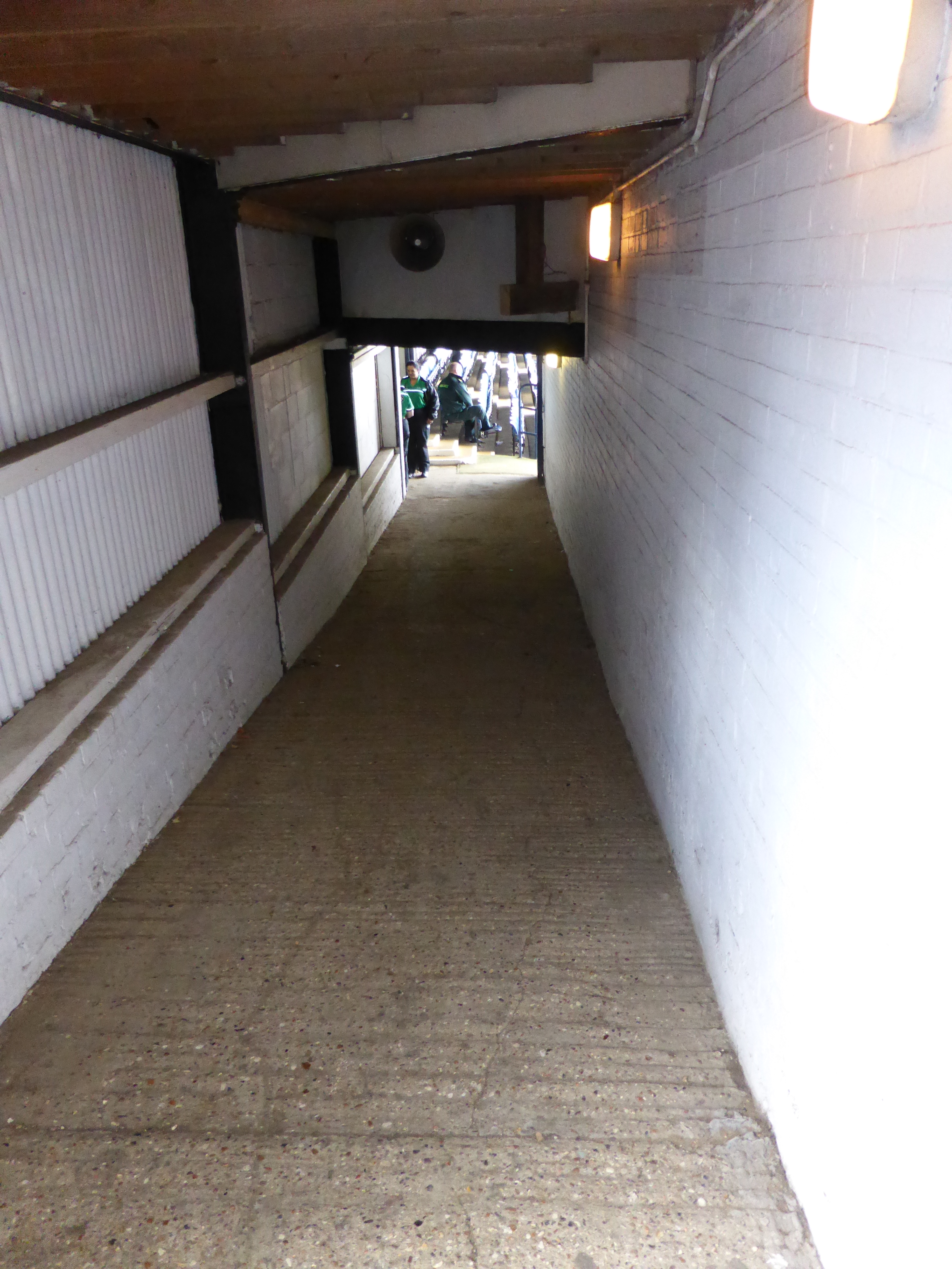 I leave the away supporters’ entrance – and go to the main stand at the corner of the street to enter the Oak Road end through a long tunnel.
