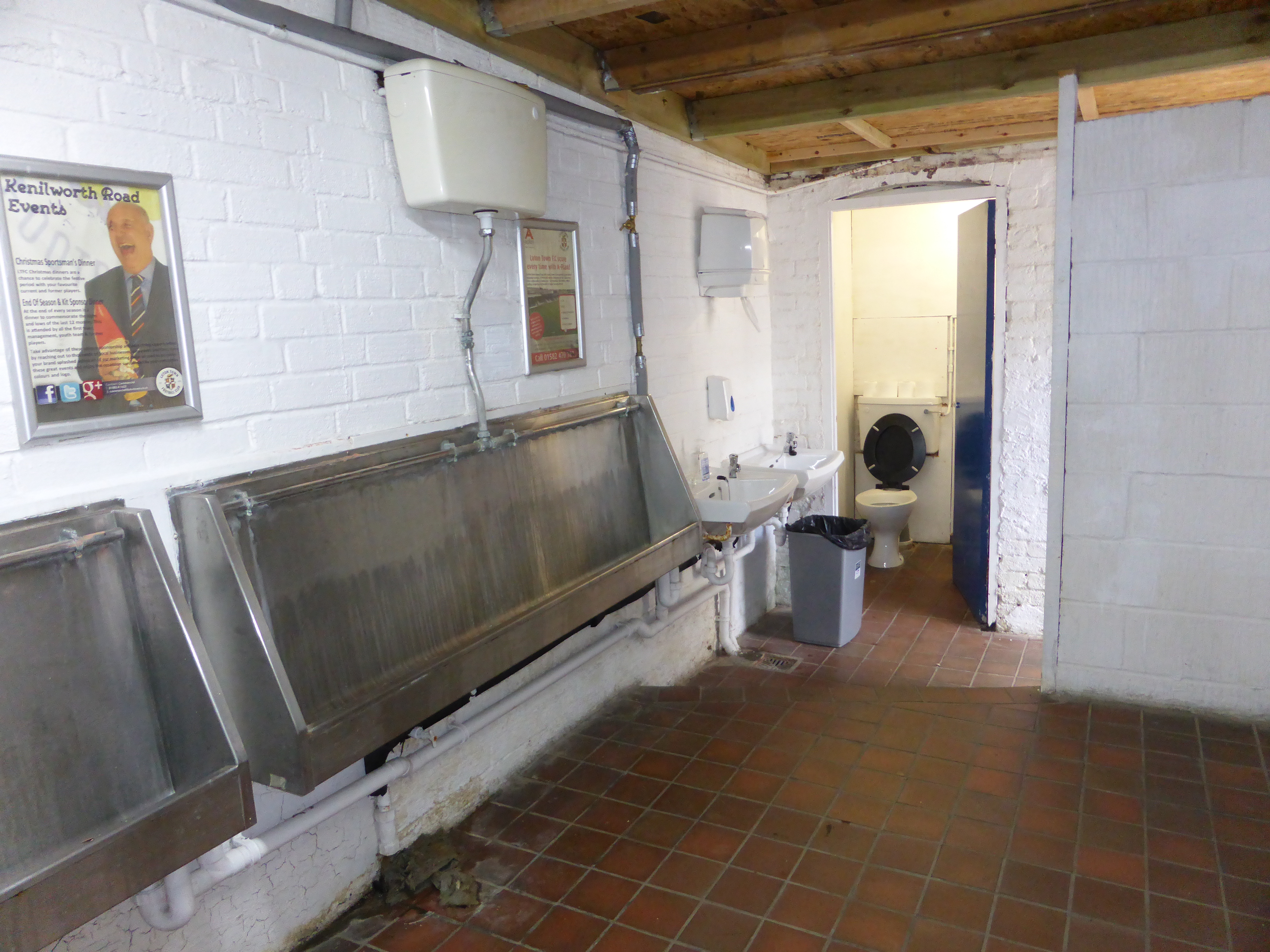 Compared to the relative small size of the ground, they have got a gigantic set of signs for the toilets … More interestingly, the lower section of the stand – the old standing terrace – only has benches. Perfect for getting up to stand. Most of the people enter from the top of the stand – from the labyrith of stairways on the outside of the stand. A fence makes it possible to use the entire Oak End for away supporters.