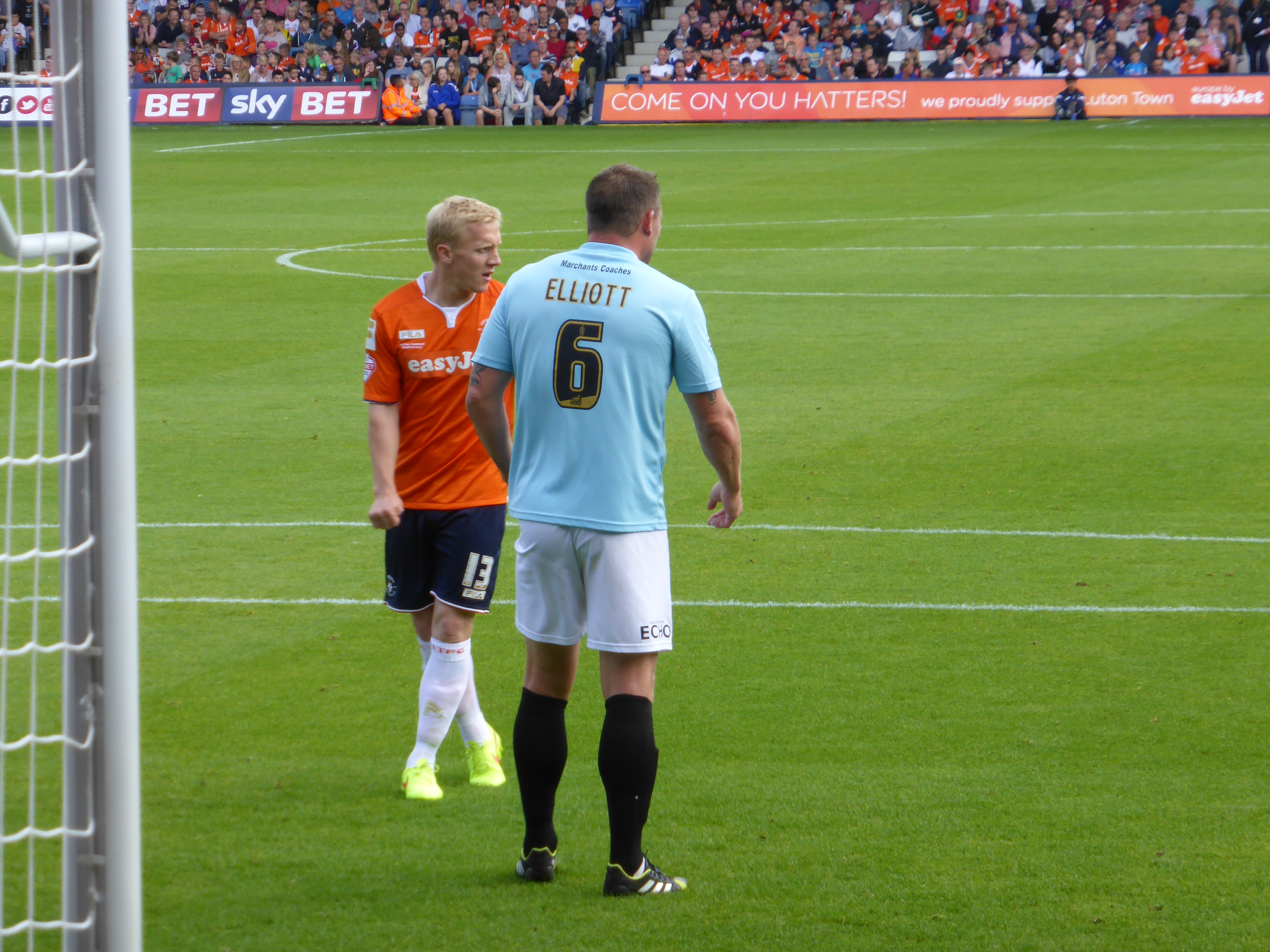 Much to my delight, I notice that both teams field a classic, British centre-half. Big and tough, ready to put his head anywhere. The Peter Kay no-nonsense “Have it” type, ready to belt the ball away to safety. Elliott is a playing coach at Cheltenham, McNulty captain of Luton. I should have played my football in England – then I might have got further than the D-team!