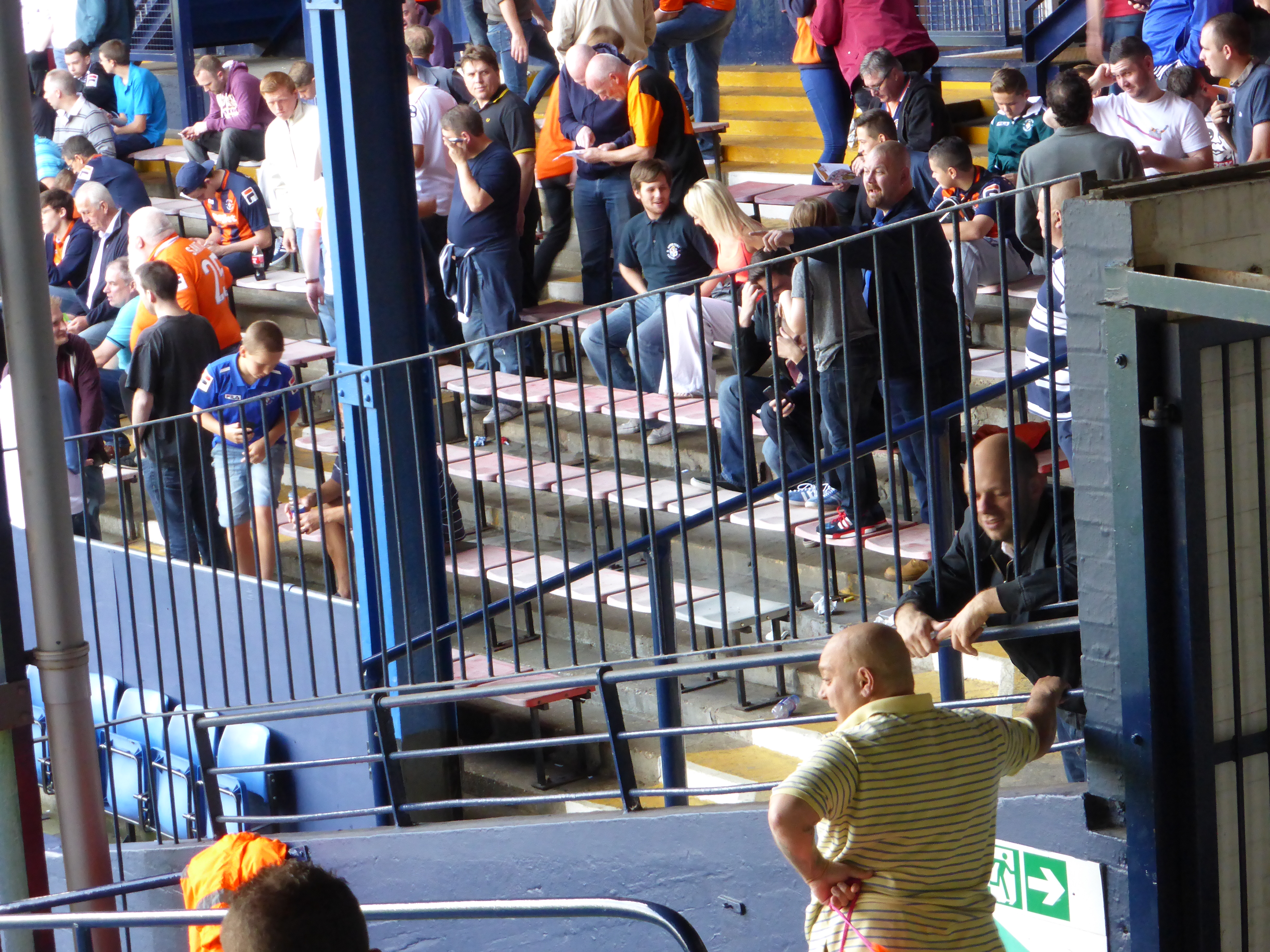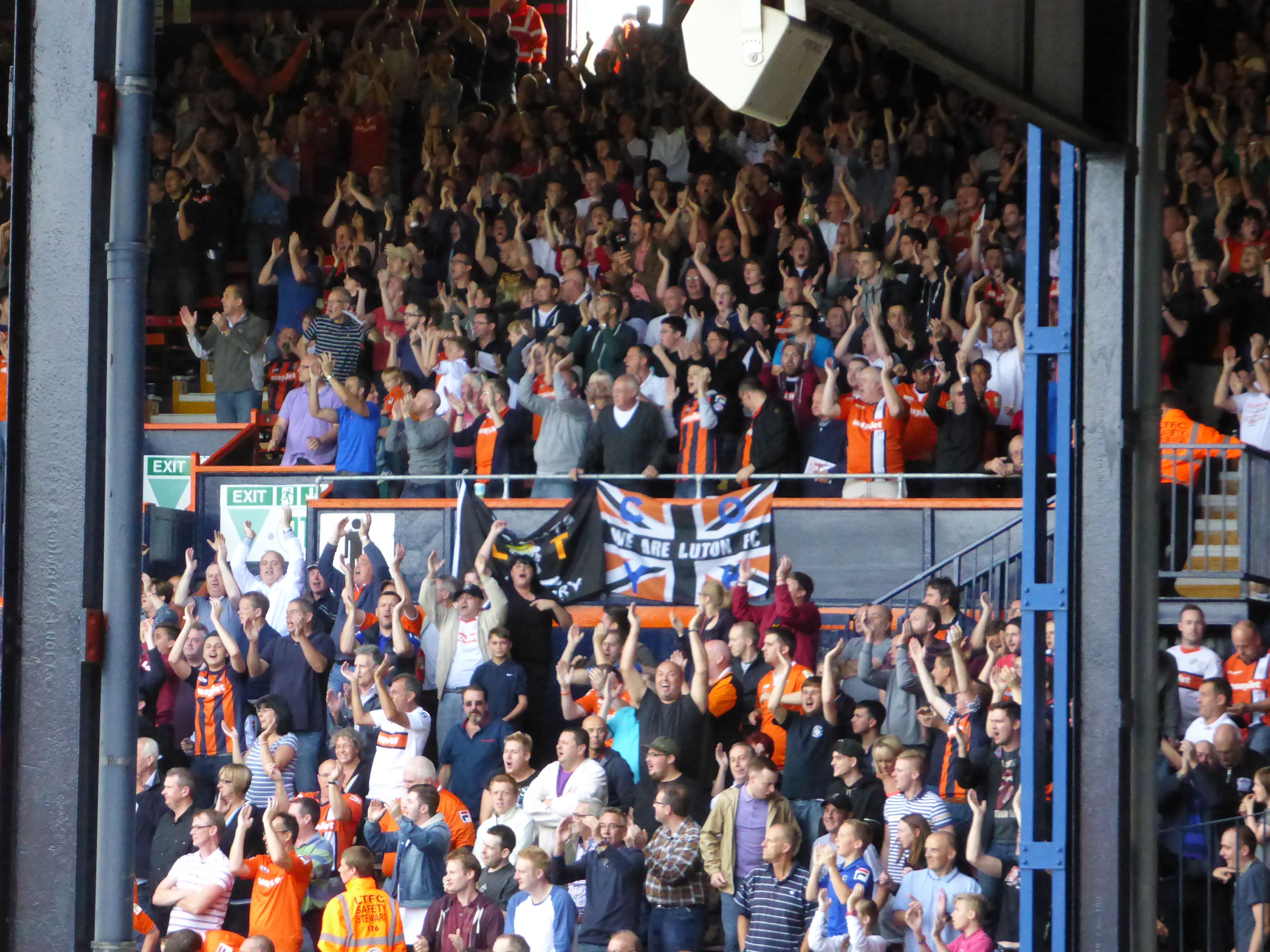 The crowd starts off in pretty good voice, helped on by a Luton goal after about 10 minutes. But gradually it fades out. Thre crowd gets caught up with the tension of the match, which is pretty close and fiercely contested. There are good play and decent chances at both ends, but Luton manage to hold on to the win.