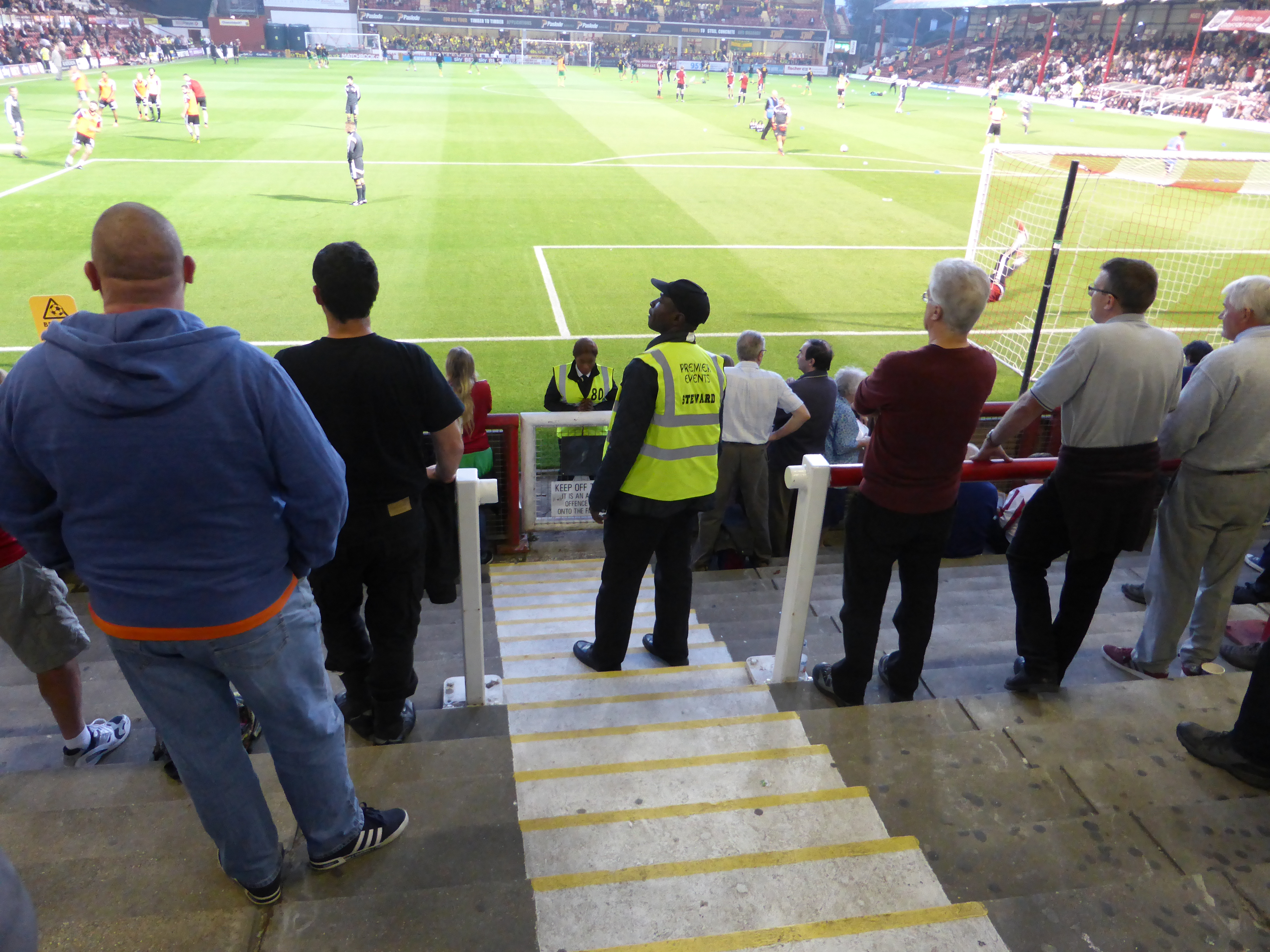 Unfortunately, it is only the away support down the other end, who get the opportunity to jump for joy. Three goals in the final 20 minutes see them win 3-0, which is a bit unfair. Just before Norwich’s second goal, Brentford have a shout for a penalty turned down. The crowd is furious. “You don’t know what you are doing”, “wanker”, “you’ve better run for the tunnel”, “2-0 for the referee” are just some of the chants coming up.