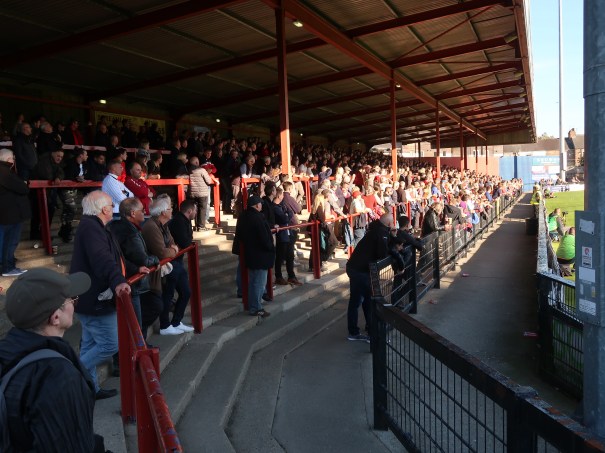 Located right in the centre of this proud old football city, the history of Bramall Lane makes it something special. And if you don’t know the history, you are told by the red plaques on the fence, marking whereto the cricket pitch went until 1973. Behind the fence, the almost brutal 70’ish concrete stand and a memorial garden. But the outstanding feature of Bramall Lane is the traditional Kop embankment that you have to climb to get into the stand. Fantastic. “Forged in Steel”